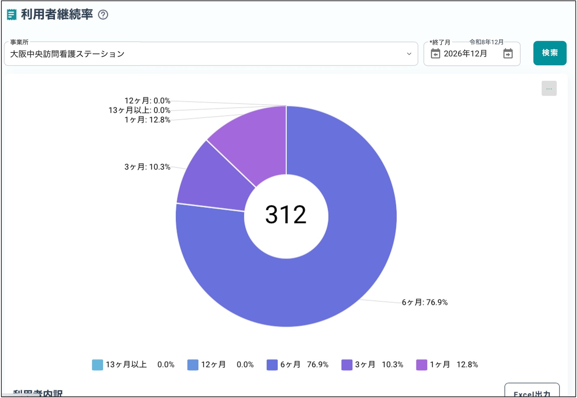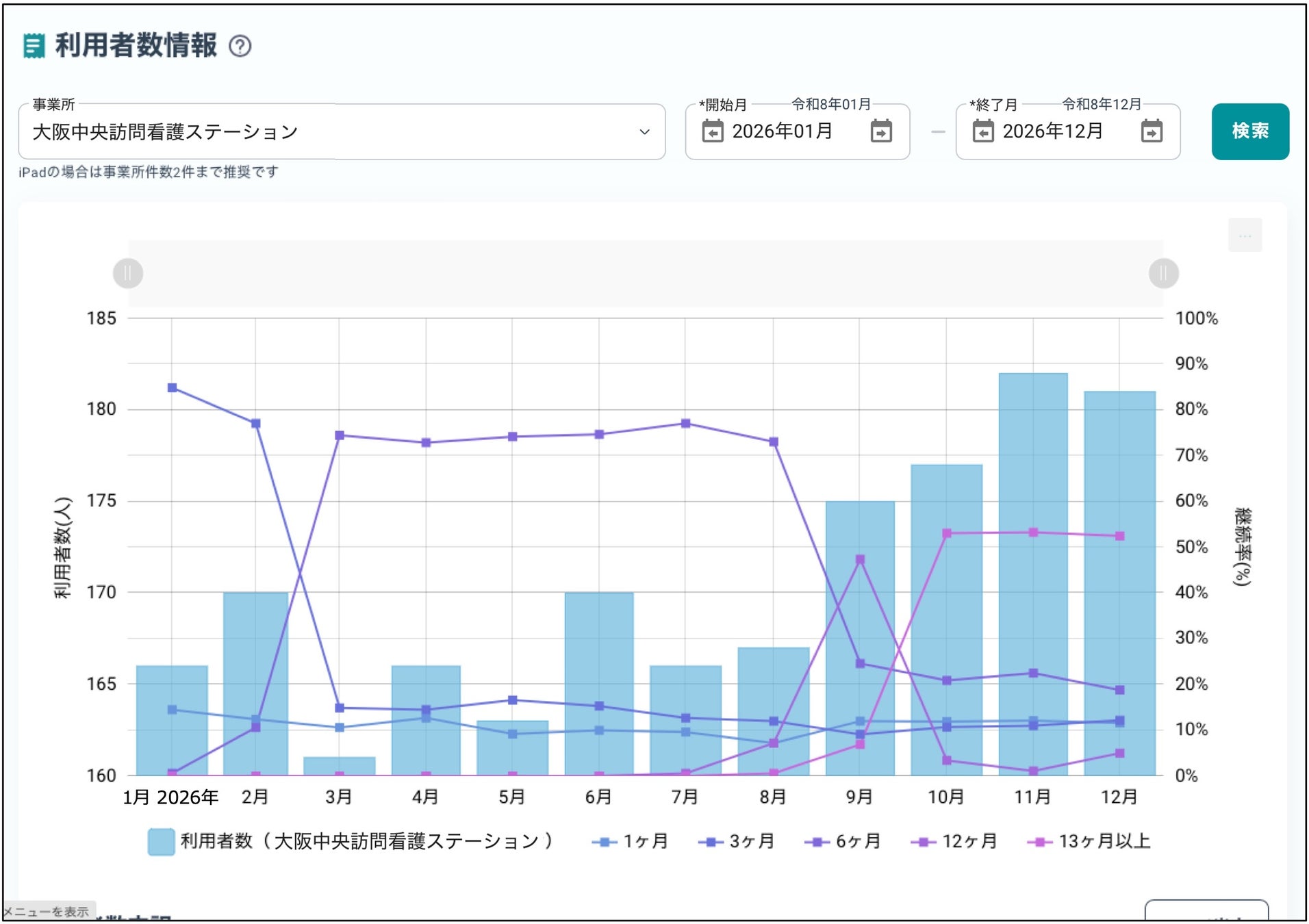 利用者数 / 利用者継続期間:利用者の離脱予兆を早期に発見し、先手の対策を可能に。