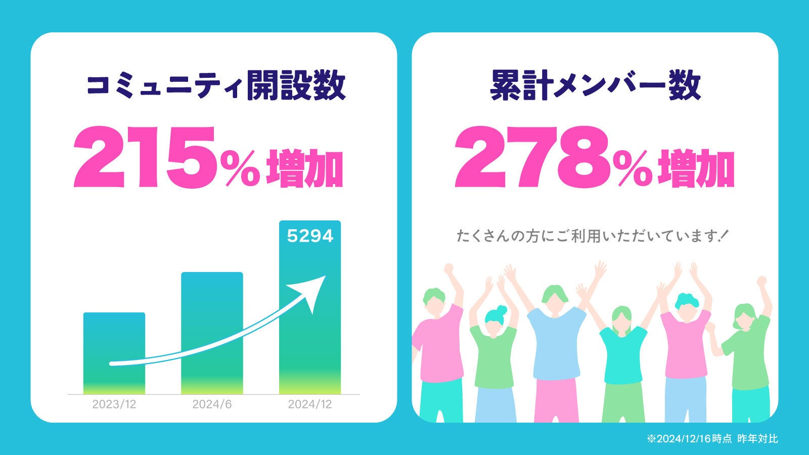 コミュニティ数の増加に伴い、累計メンバー数も前年同期比278%増を記録。