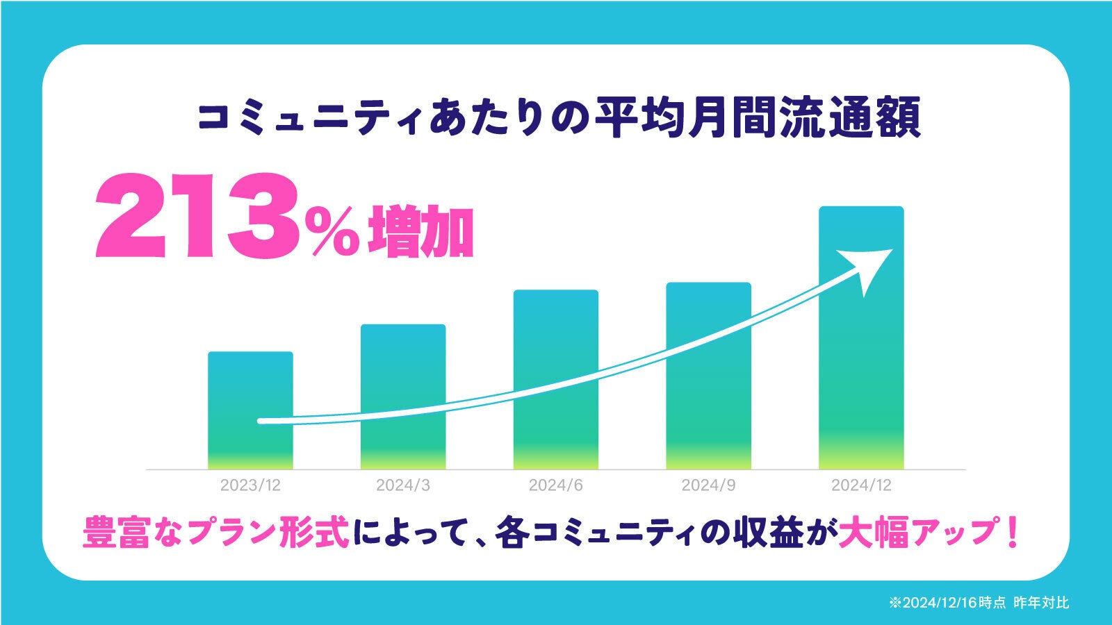 「YOOR」で売上を伸ばすコミュニティの平均月間流通額が、1年間で2倍以上に増加しました。