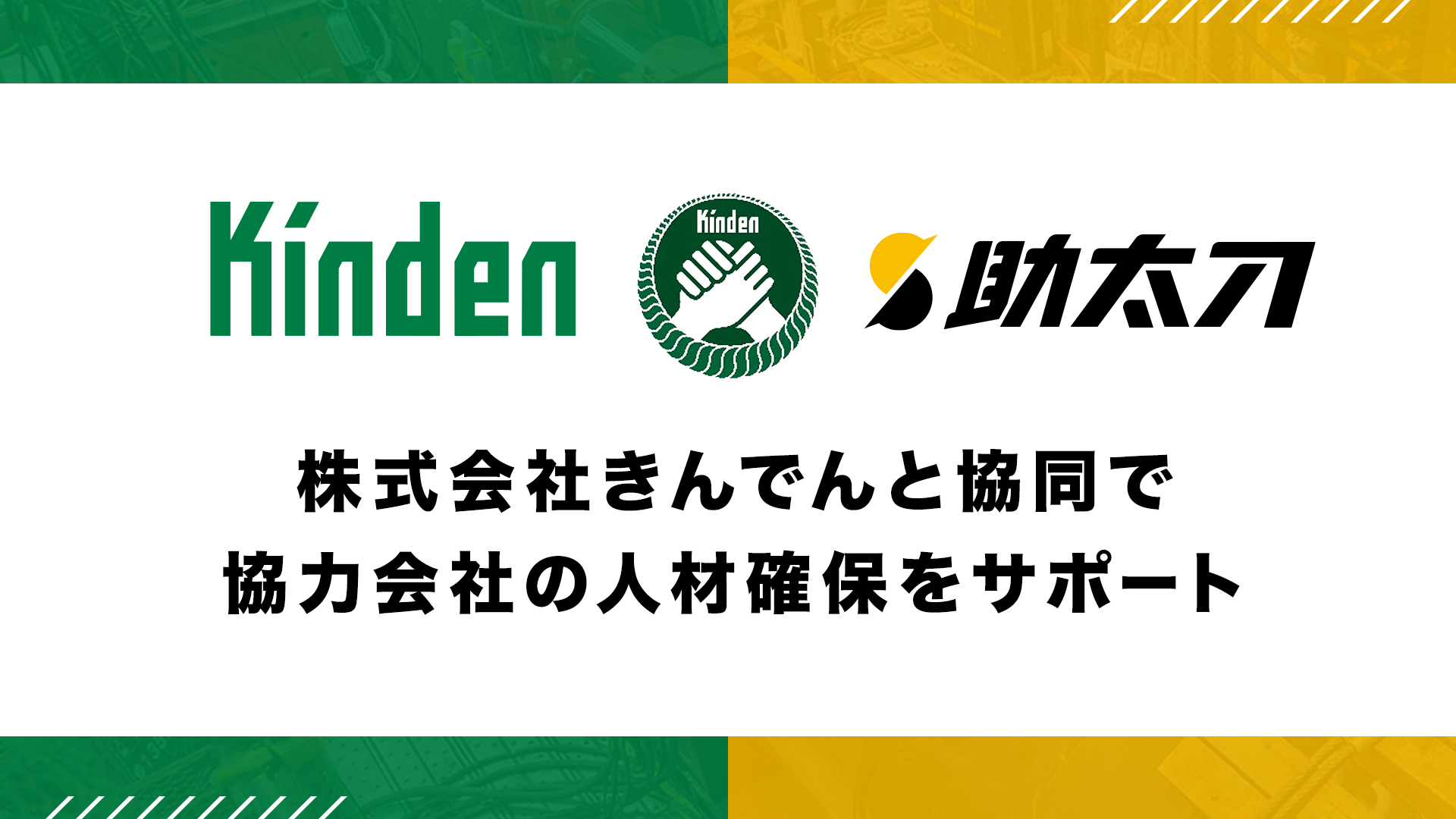 このような潮流の中、きんでんは当社と協同で、きんでんの協力会社へ当社が運営する建設業特化の求人サービス「助太刀社員」の導入や、職人と工事会社のマッチングサービス「助太刀 法人プラン」を推奨することでIT活用における人材確保を実現し、施工体制の強化を図ってまいります。