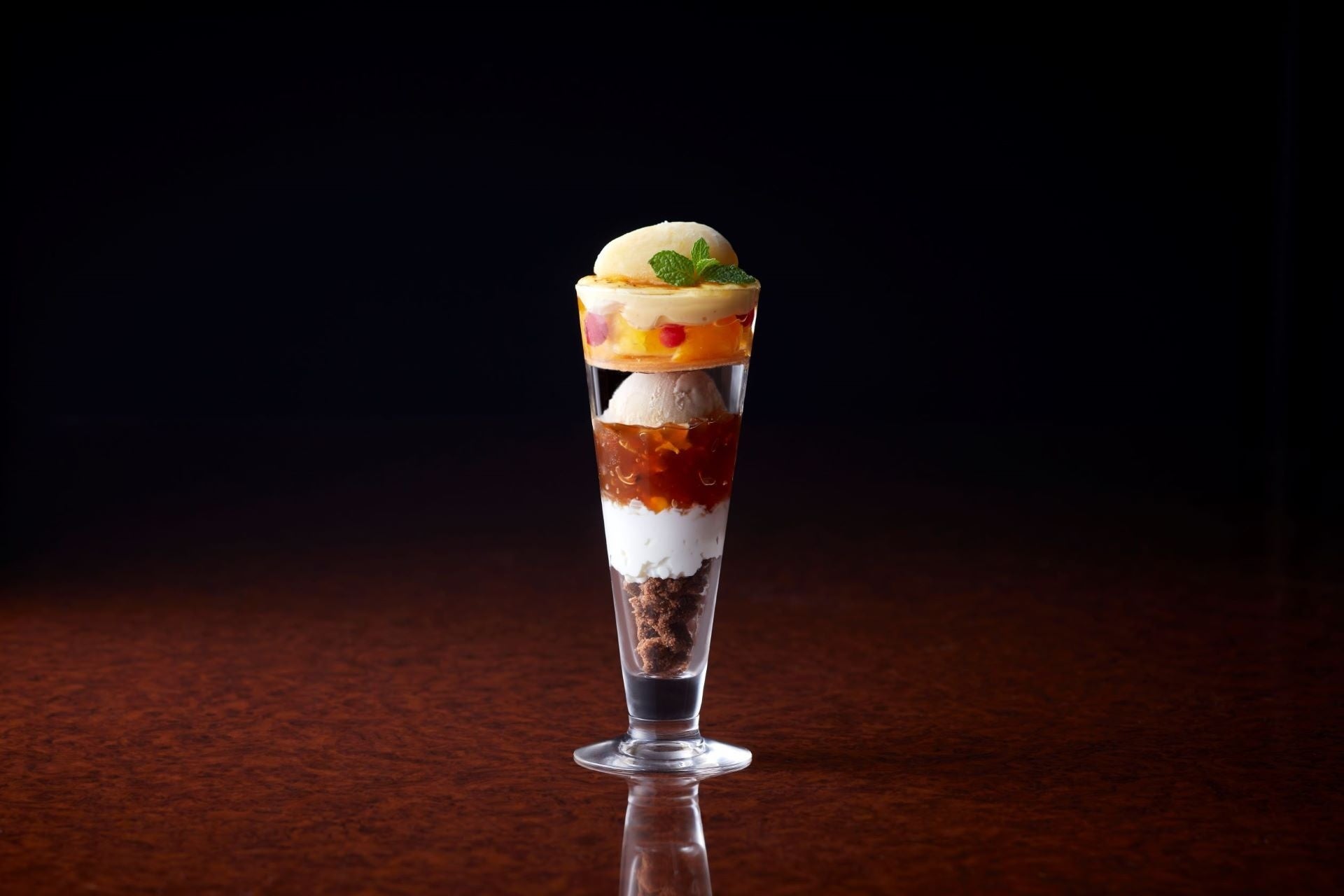 さらに、上の層は、ライチリキュールゼリーやパイナップルコンポートなどを使用し、口当たりさっぱりとした味わいに仕上げました。下の層のアールグレイを使用した紅茶アイスや紅茶ジュレは、風味と苦みの絶妙なバランスが締めにふさわしい味わいです。