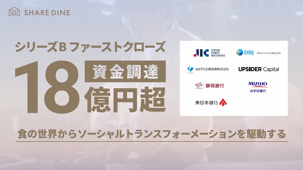 1万人の料理人ネットワークを持つ株式会社シェアダイン(本社:東京都港区、代表取締役:飯田 陽狩、以下「シェアダイン」)は、JICベンチャー・グロース・インベストメンツ株式会社をリードインベスターとして、DBJキャピタル、あおぞら企業投資(以上順不同)を引受先とする第三者割当増資および複数の金融機関からの融資により、シリーズBラウンドのファーストクローズとして18億円超の資金調達を実施しました。本資金を活用し、シェアダインはシェフのキャリア形成を支援するプラットフォームとしてのさらなる発展を目指し、新サービス「CHEFLINK(シェフリンク)」をはじめとした開発の加速を行います。また、営業・マーケティング部門や管理部門の強化を通じて、事業の成長を一層加速させてまいります。