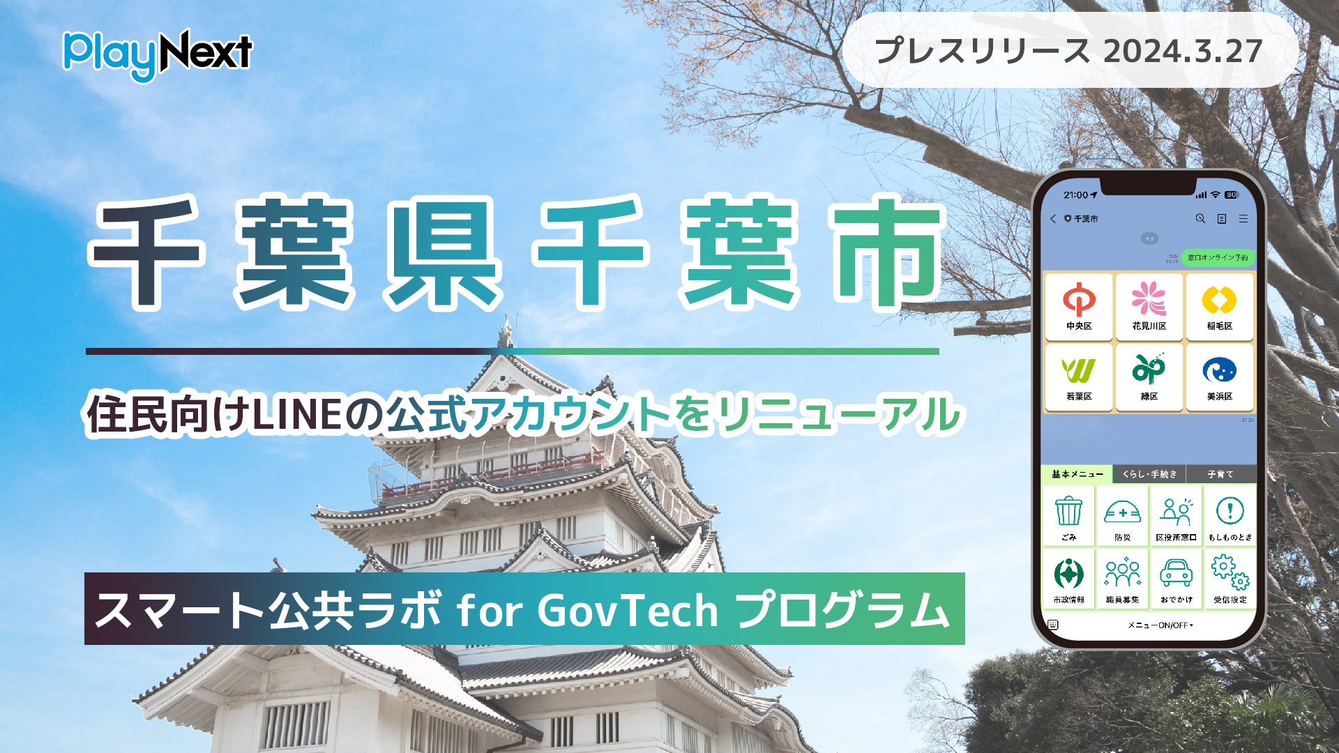 プレイネクストラボ株式会社(本社:東京都品川区、代表取締役:柏 匠、以下 「プレイネクストラボ」)は千葉県千葉市(以下「千葉市」)LINE公式アカウントのリニューアルに「スマート公共ラボ for GovTechプログラム」を活用し、2024年3月22日(金)より一般公開したことをお知らせします。