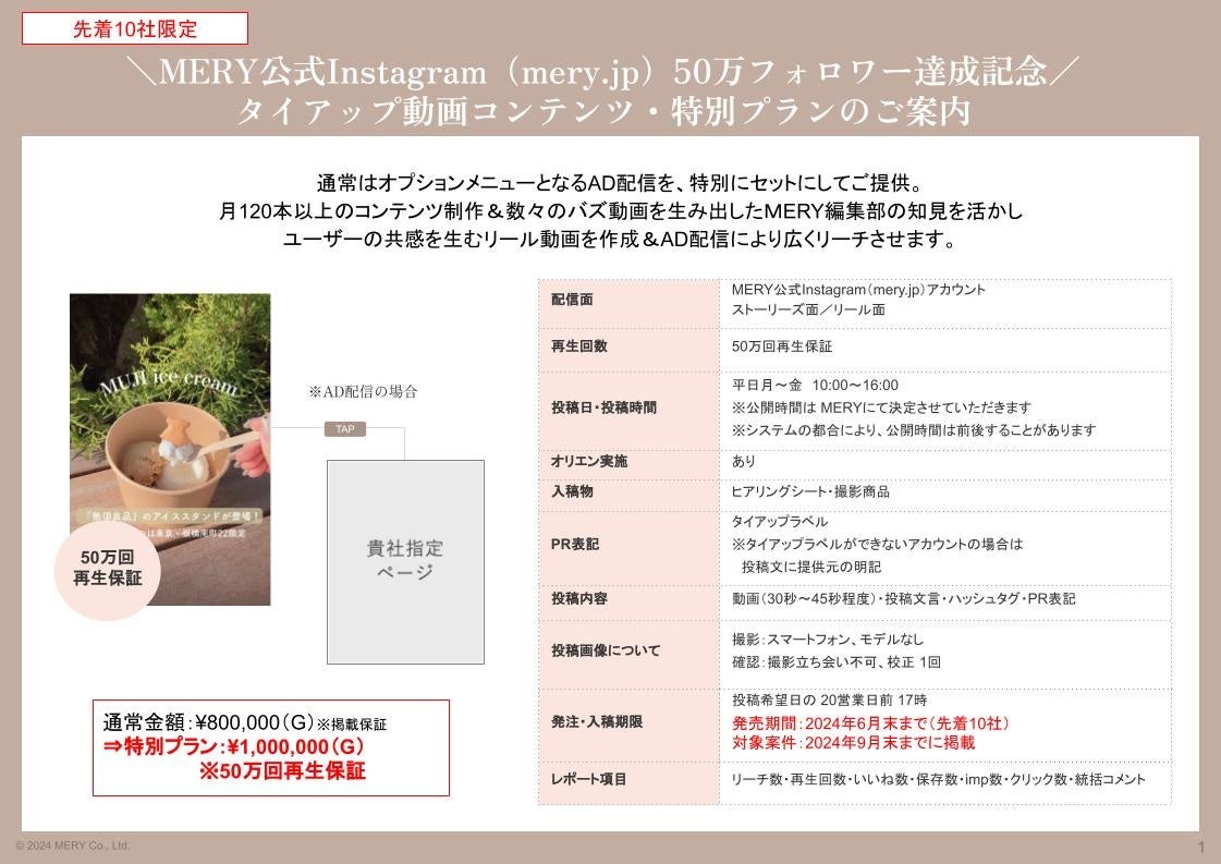このたびmery.jpの50万フォロワーを記念して、タイアップ動画コンテンツの特別プランをリリースすることとなりました。