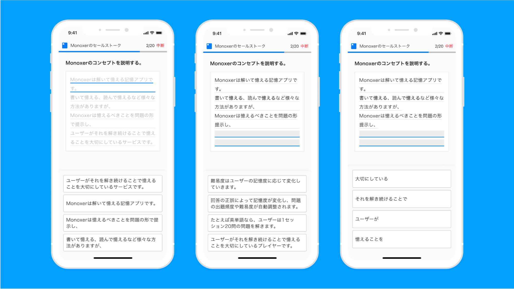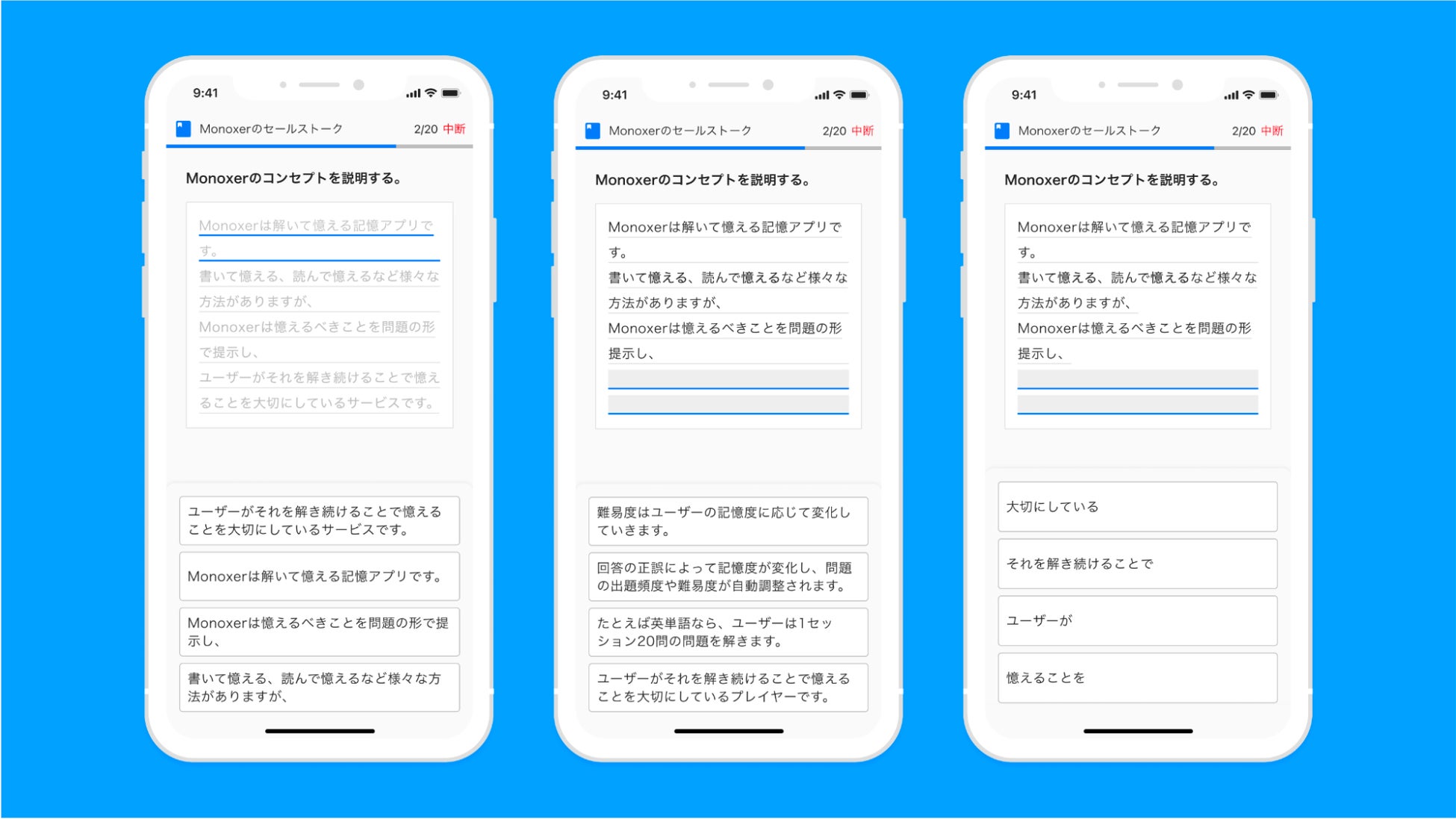 Monoxerのアップデートとして、文章を効率的に記憶できる「文章記憶機能」をリリースいたしました。