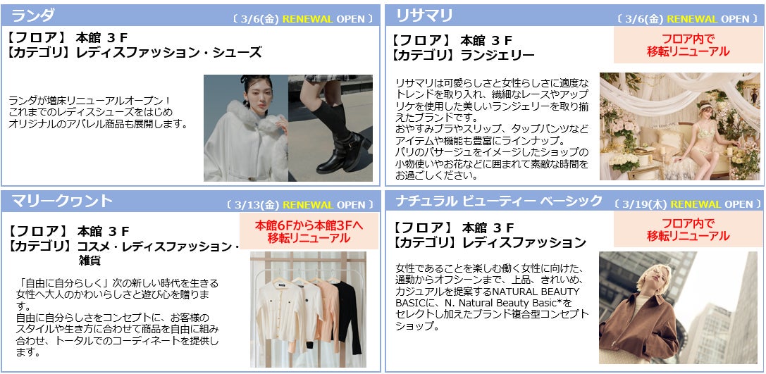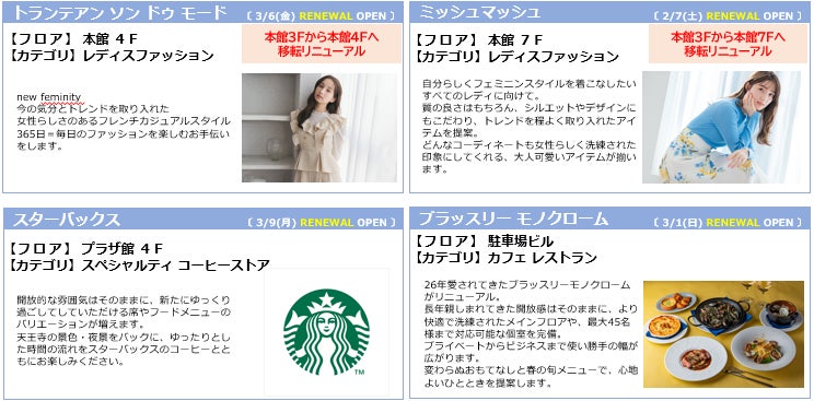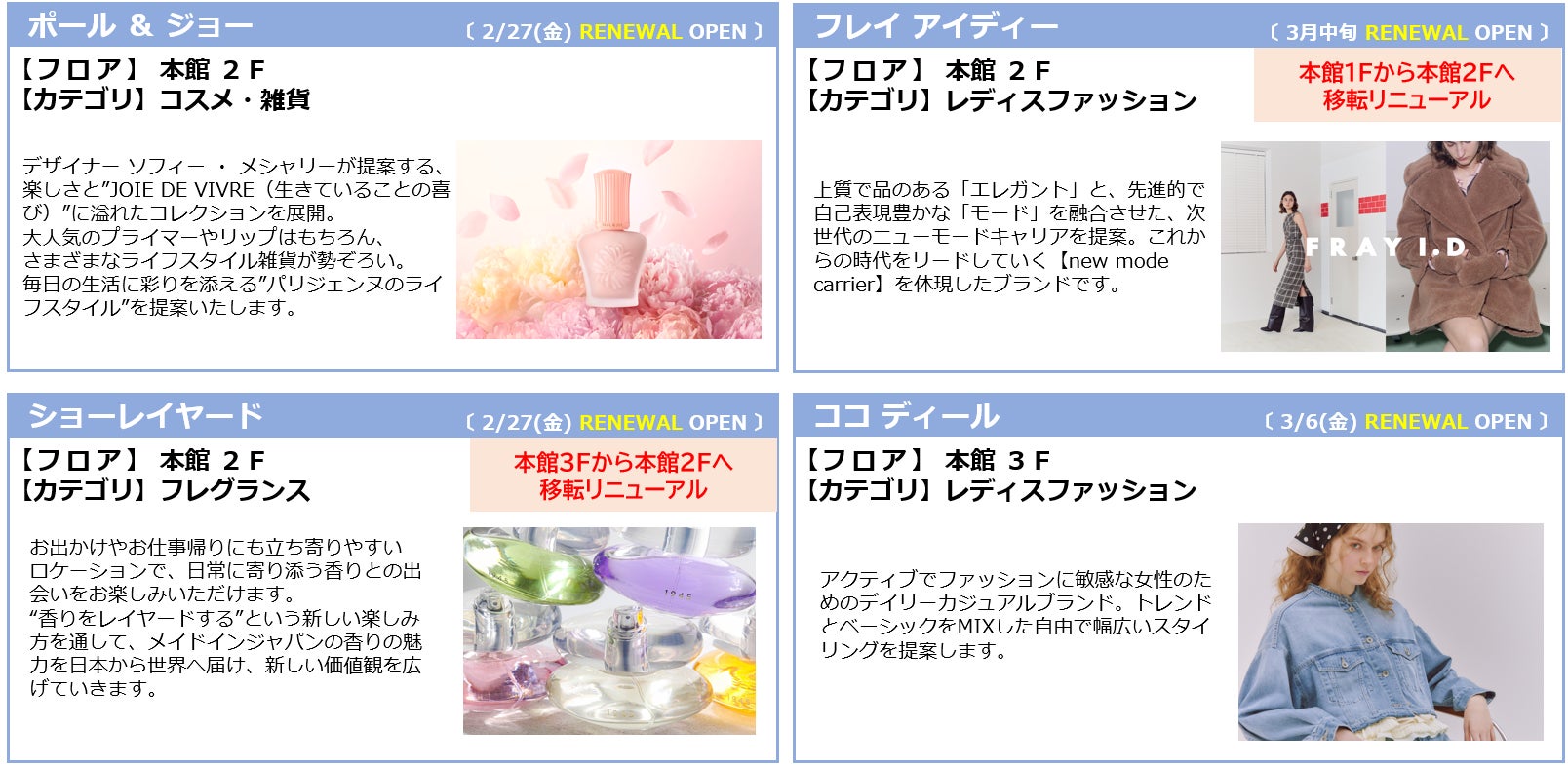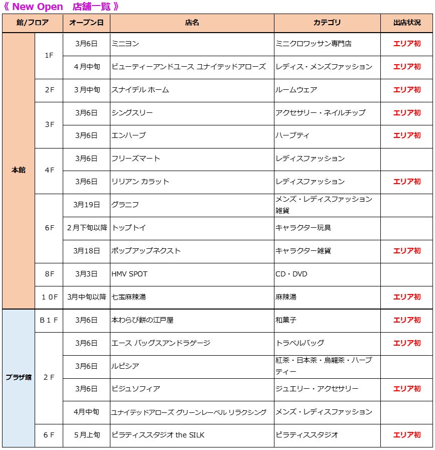 本館1Fには博多で行列必至のミニクロワッサン専門店「ミニヨン」、本館10Fには麻辣湯ブームの火付け役である「七宝麻辣湯」など、話題のグルメがエリア初出店します。さらに4月中旬には本館1Fに人気ファッションブランド「ビューティー&ユース ユナイテッドアローズ」、プラザ館2Fには「ユナイテッドアローズ グリーンレーベル リラクシング」の2店舗がオープンし、ファッションもグルメも一層充実したフロアへと生まれ変わります。