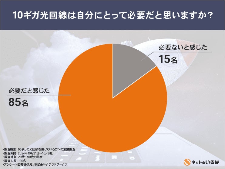 10ギガ光回線が「必要」と回答したのは、全体の85%でした。必要と回答したユーザーのほとんどが「通信速度の改善ができた」と回答しています。