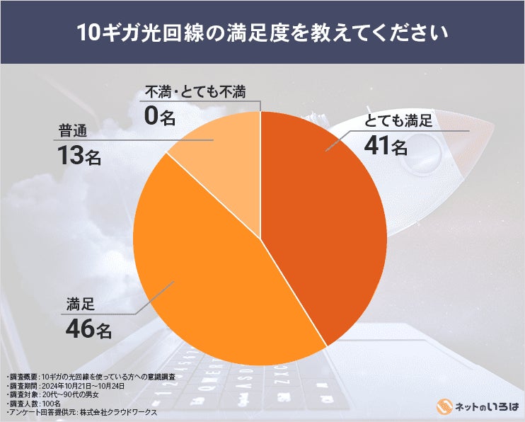 株式会社NEXT(所在地:東京都新宿区、代表取締役:野一 亮二)が運営する情報メディア「ネットのいろは」にて、インターネット(光回線)10ギガユーザー100名を対象にしたアンケートを実施しました。この調査から、10ギガ光回線ユーザーのうち、約87%が満足していることが分かりました。