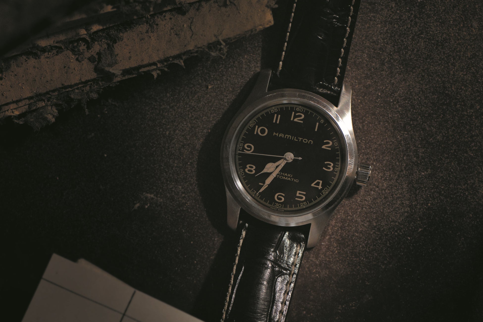 ハミルトンストア 東京でのみ発売される「カーキ フィールド メカ」。質感あふれるコンクリートダイヤルに猫の足跡、ケースバックは”HIPSTER CAT”の刻印。キャットストリートのエッセンスとポップカルチャーを表現したモデル。