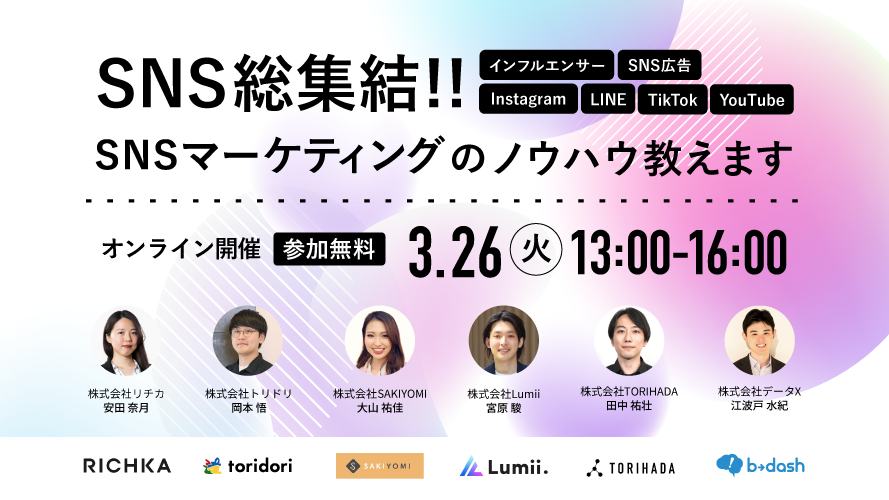 【3月26日(火)13:00~16:00/オンライン開催/参加無料】SNS総集結!!SNSマーケティングのノウハウ教えます
