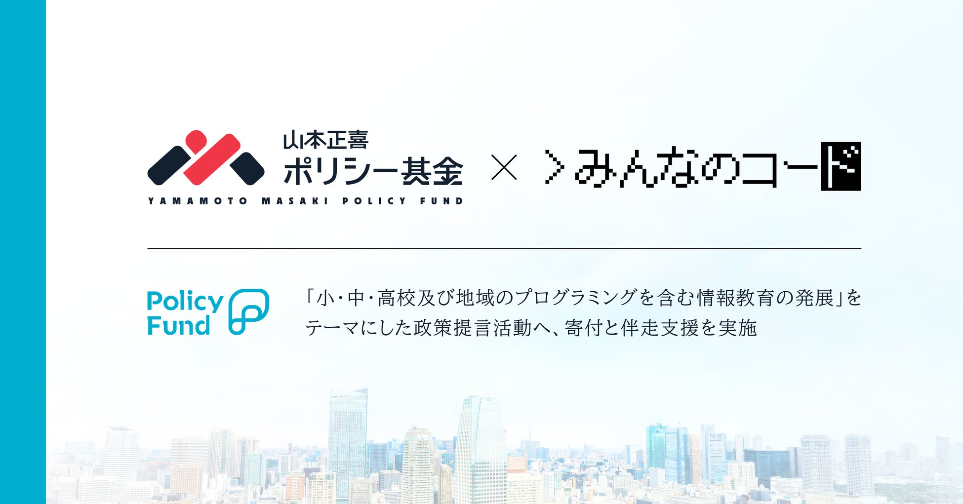 株式会社PoliPoli(所在地:東京都千代田区、代表取締役:伊藤和真)は、「山本正喜ポリシー基金」(寄付者:Chatwork株式会社 代表取締役CEO山本正喜氏、以下山本基金)の第1号寄付先を、NPO法人みんなのコード(東京都港区、代表理事:利根川 裕太、以下みんなのコード)に決定したことをお知らせします。