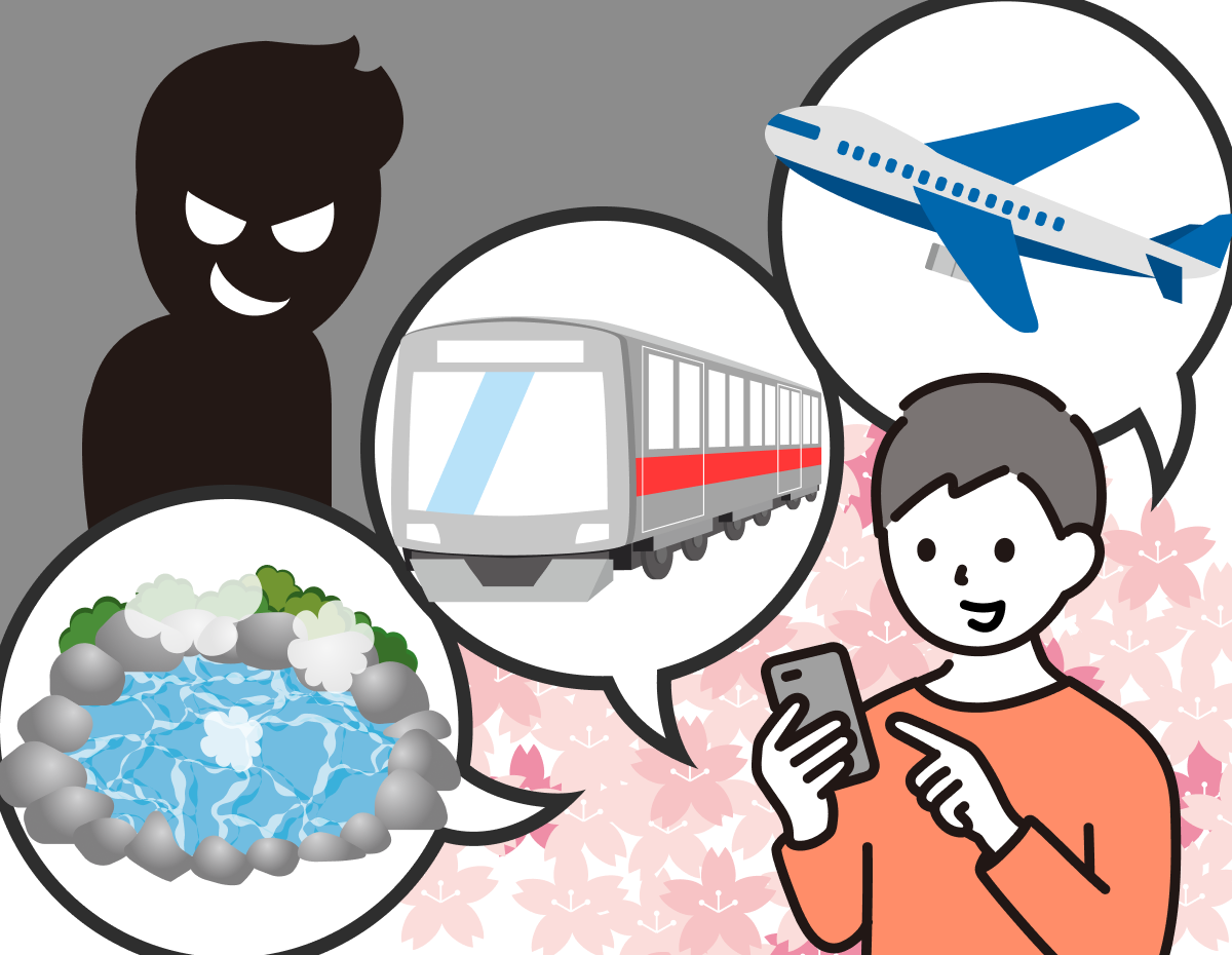 宿泊施設や飛行機のチケットなどをオンラインで予約・購入する機会も増えているため、金融機関やクレジットカード会社等をかたるフィッシング詐欺にも注意してください。