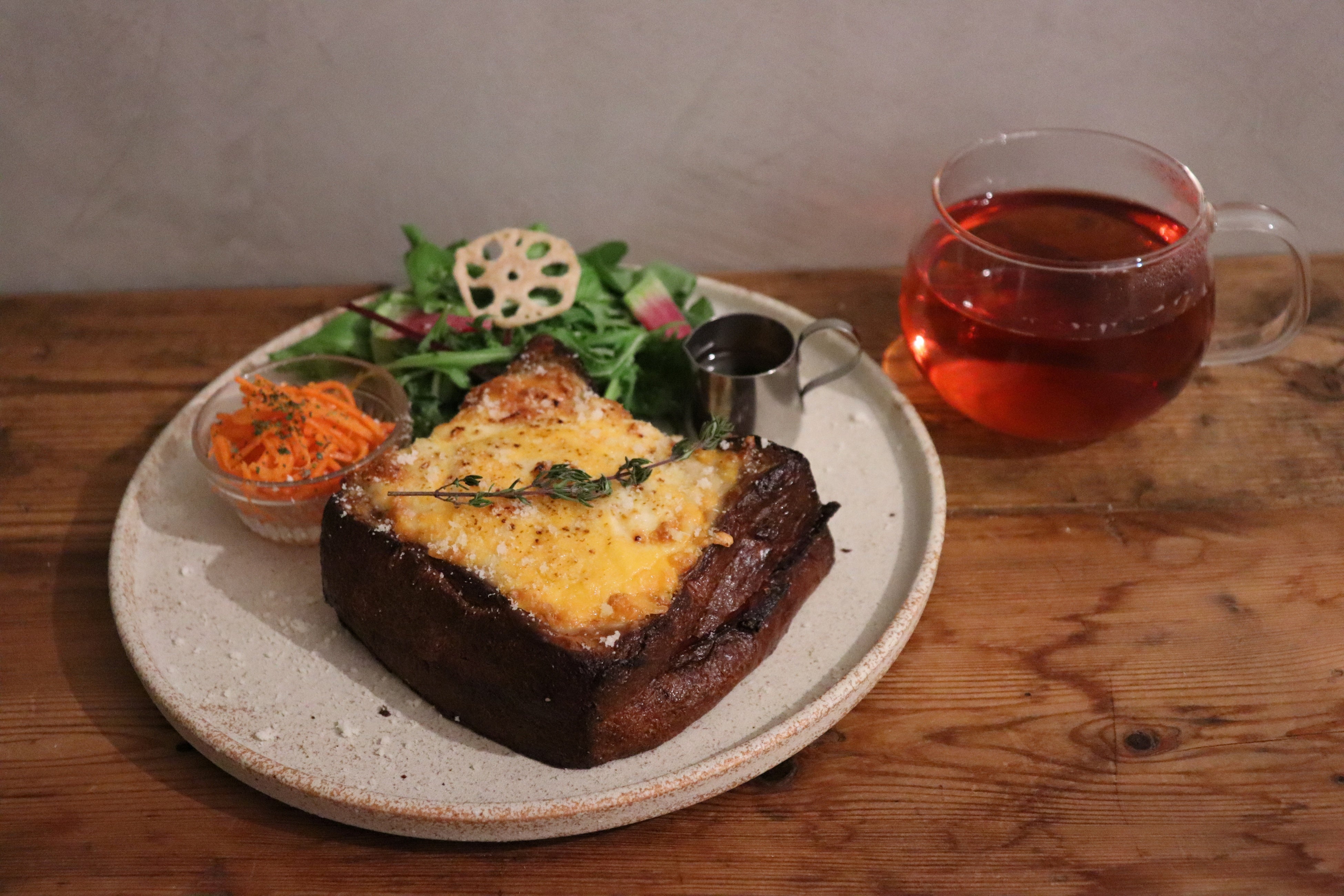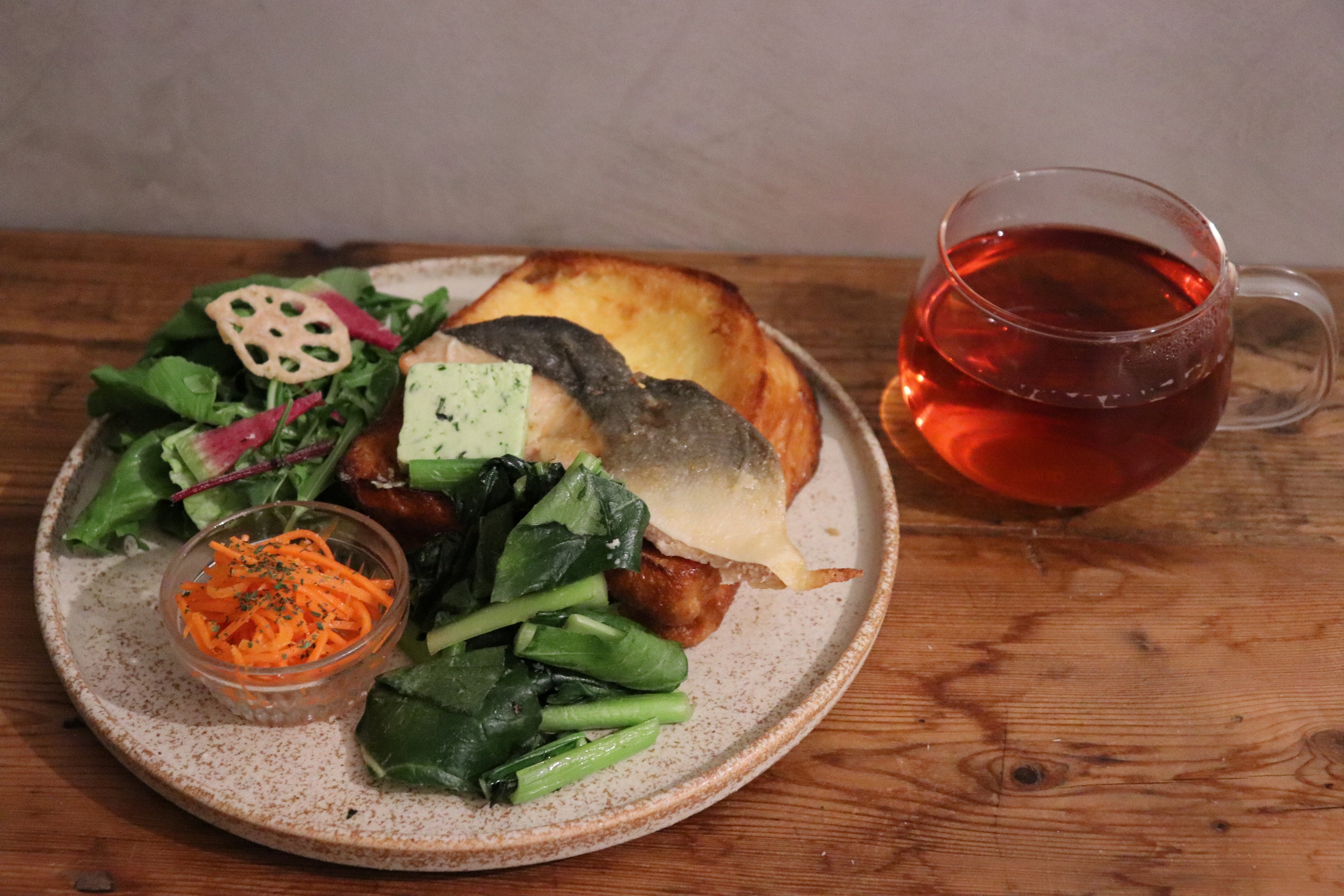 ベーコンやキャロットラペ、サーモンムニエル、クロックムッシュなど、