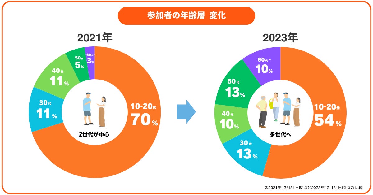 利用者層が多様化し、若年層から多世代へ。【年齢層の変化】
