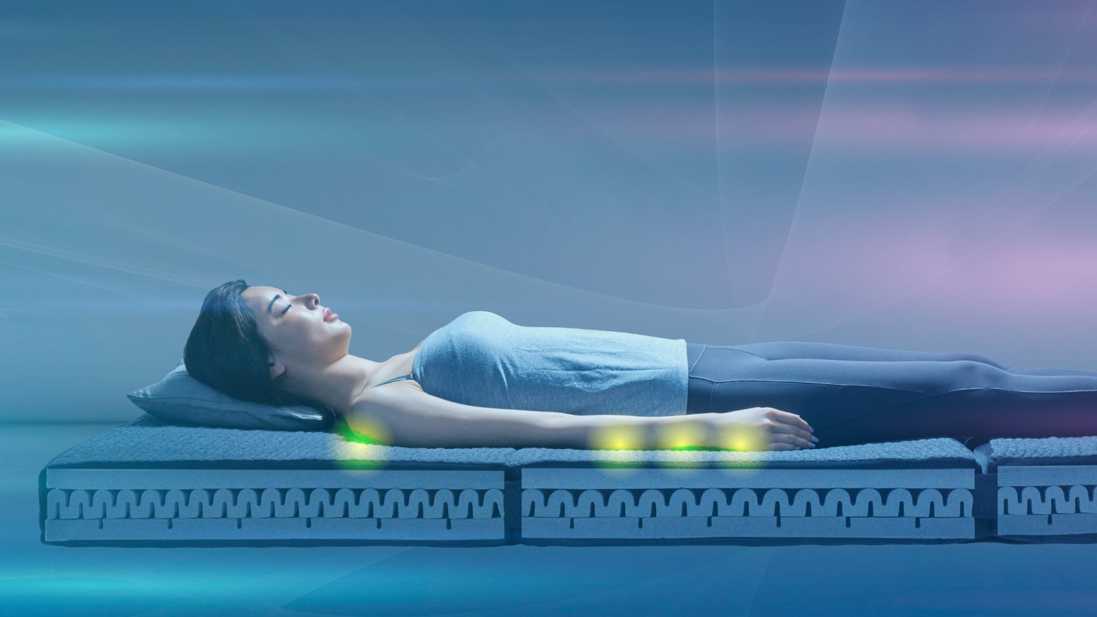 1152個の前後左右に動く「3Dセル」を採用した10cmマットレス。通気性、耐久性、体圧分散性に優れた3つのゾーンに分かれており、睡眠時の身体の疲れや眠りを妨げる不快感から開放します。