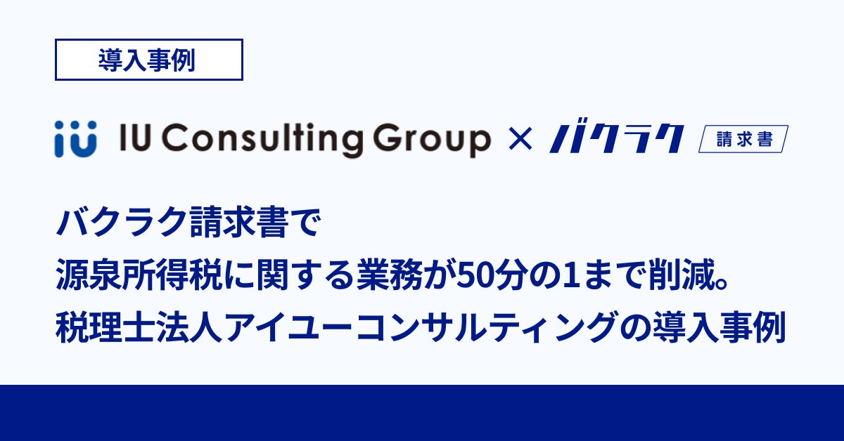 バクラク請求書で源泉所得税に関する業務が50分の1まで削減。ツールに妥協しない税理士法人アイユーコンサルティングの導入