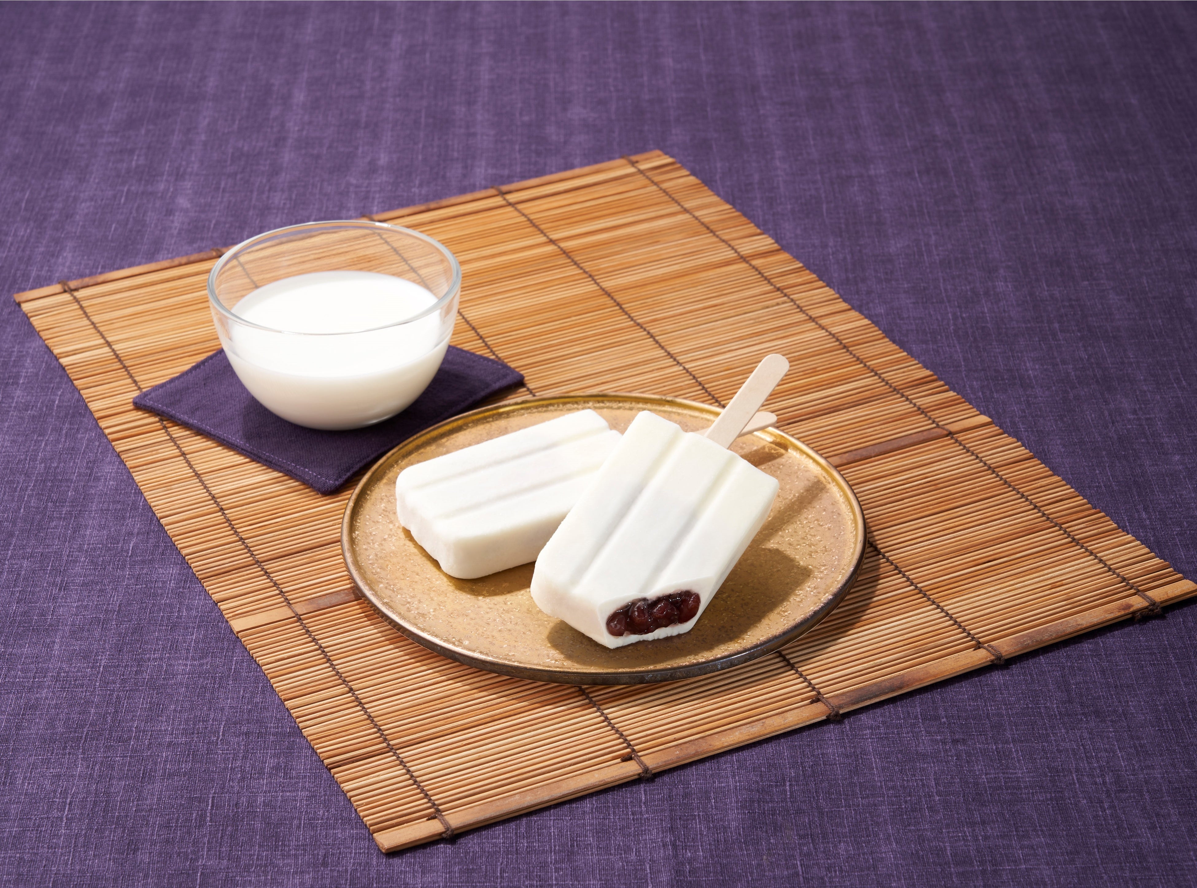 ①乳原料は北海道産のみ使用!乳原料の配合量を増やし、濃厚かつフレッシュなミルク感を味わえるミルクアイスになりました。②練乳ベースの味わいでよりつぶあんと相性がよいアイスに仕上げました。