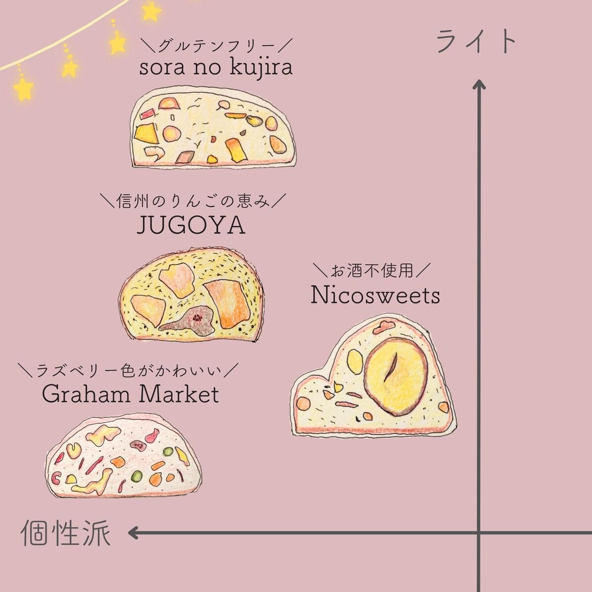 そのような方にご覧いただくことで、自分の好み、目的に合ったシュトーレン選びをお手伝いします。
