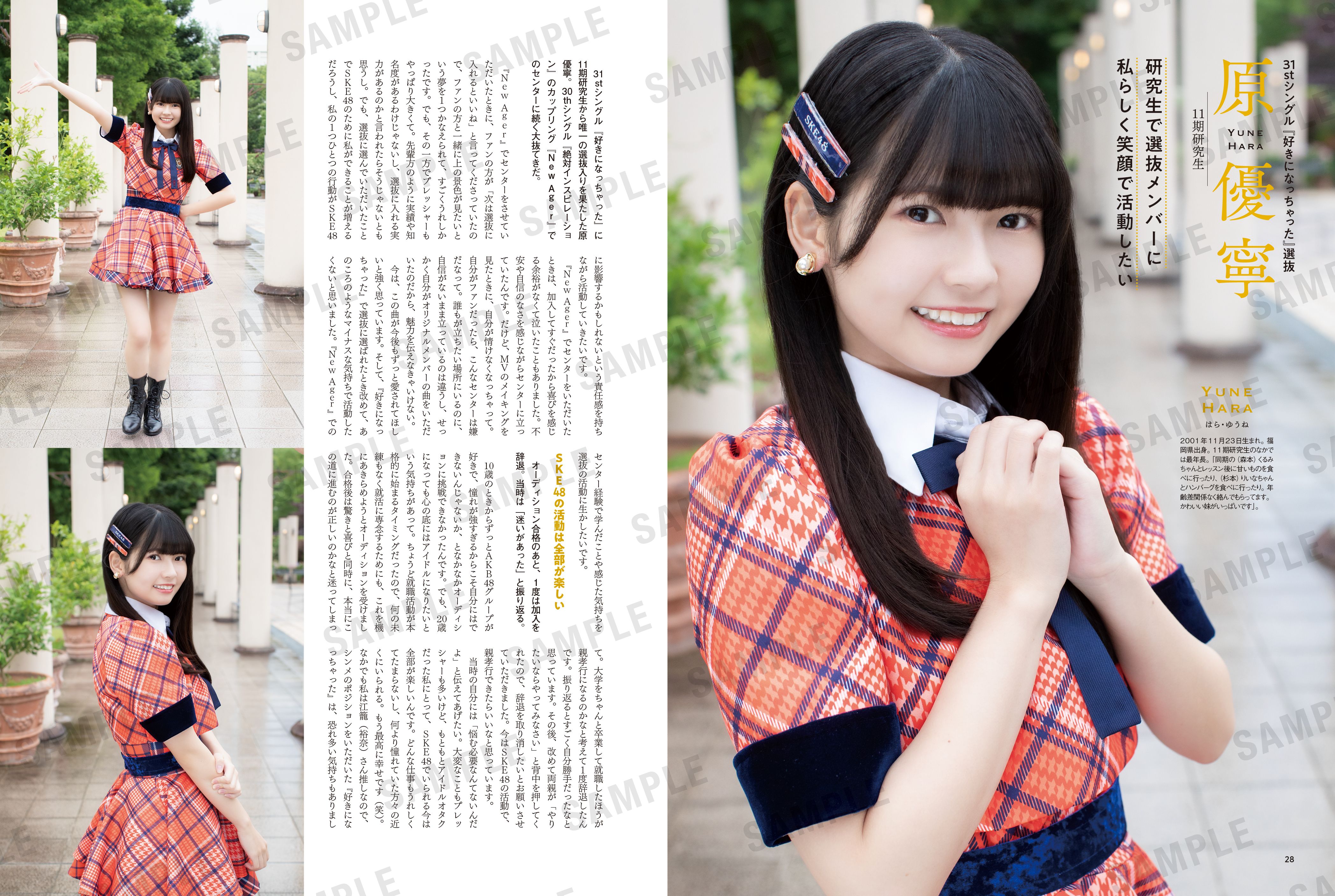 2期生から11期研究生まで、計53名の個人インタビューを多数の撮りおろし写真と共に掲載します。31stシングル「好きになっちゃった」で初のセンターに立った末永桜花は、この楽曲にかける意気込み。熊崎晴香はソロライブ開催、1st写真集発売、中日ドラゴンズの応援番組のアシスタント就任など幅広いフィールドでの活躍について。佐藤佳穂はTeamEのリーダーに抜てきされての葛藤など、各メンバーならではのエピソードや思いが満載です。