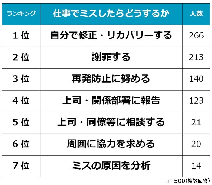 仕事でミスをしたら「自分で修正・リカバリーする」が1位
