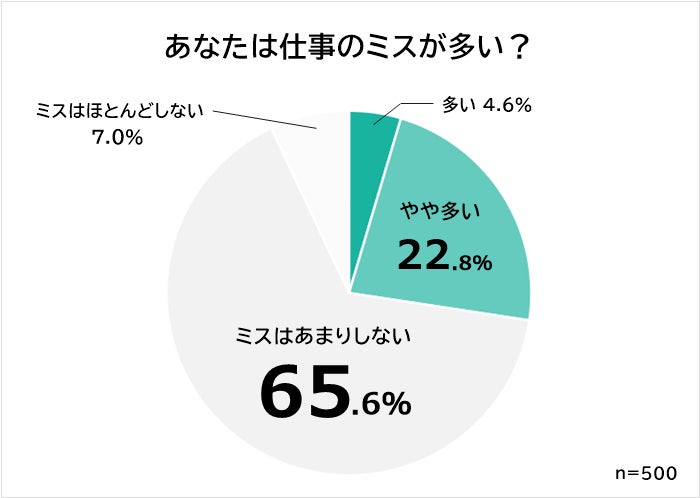 働く男女500人を対象にアンケート調査を行ったところ、「自分は仕事でミスが多い」と思っている人は27.4%で少数派でした。