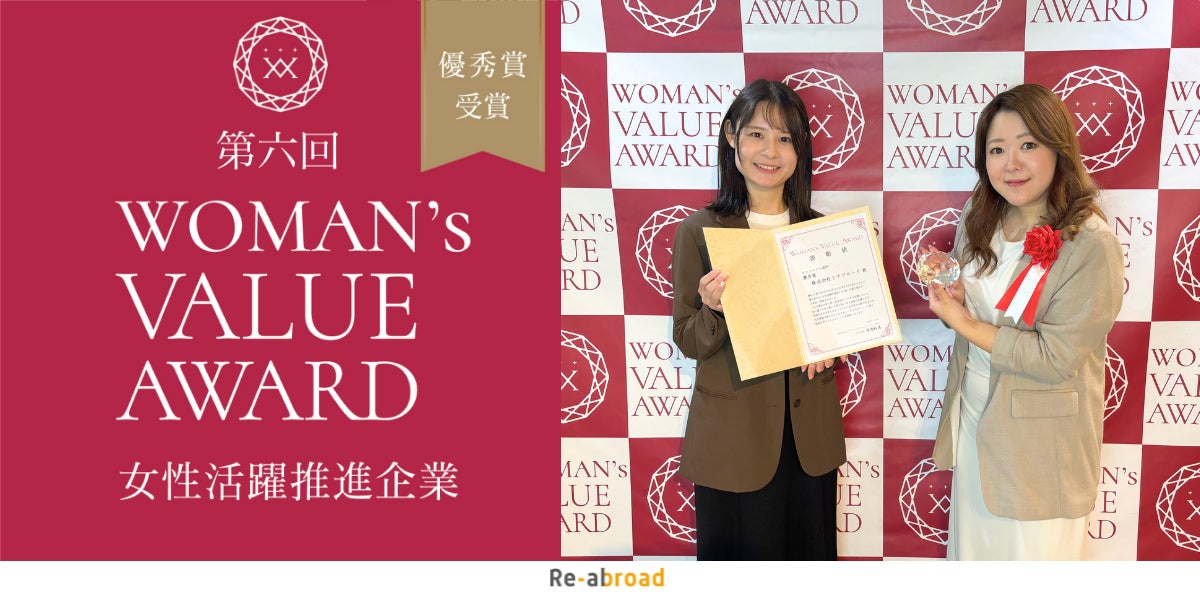 株式会社リアブロード(Re-abroad Inc.)が女性活躍を推進する企業に贈られるアワード「第6回 WOMEN’s VALUE AWARD」サステナブル部門【優秀賞】を受賞!