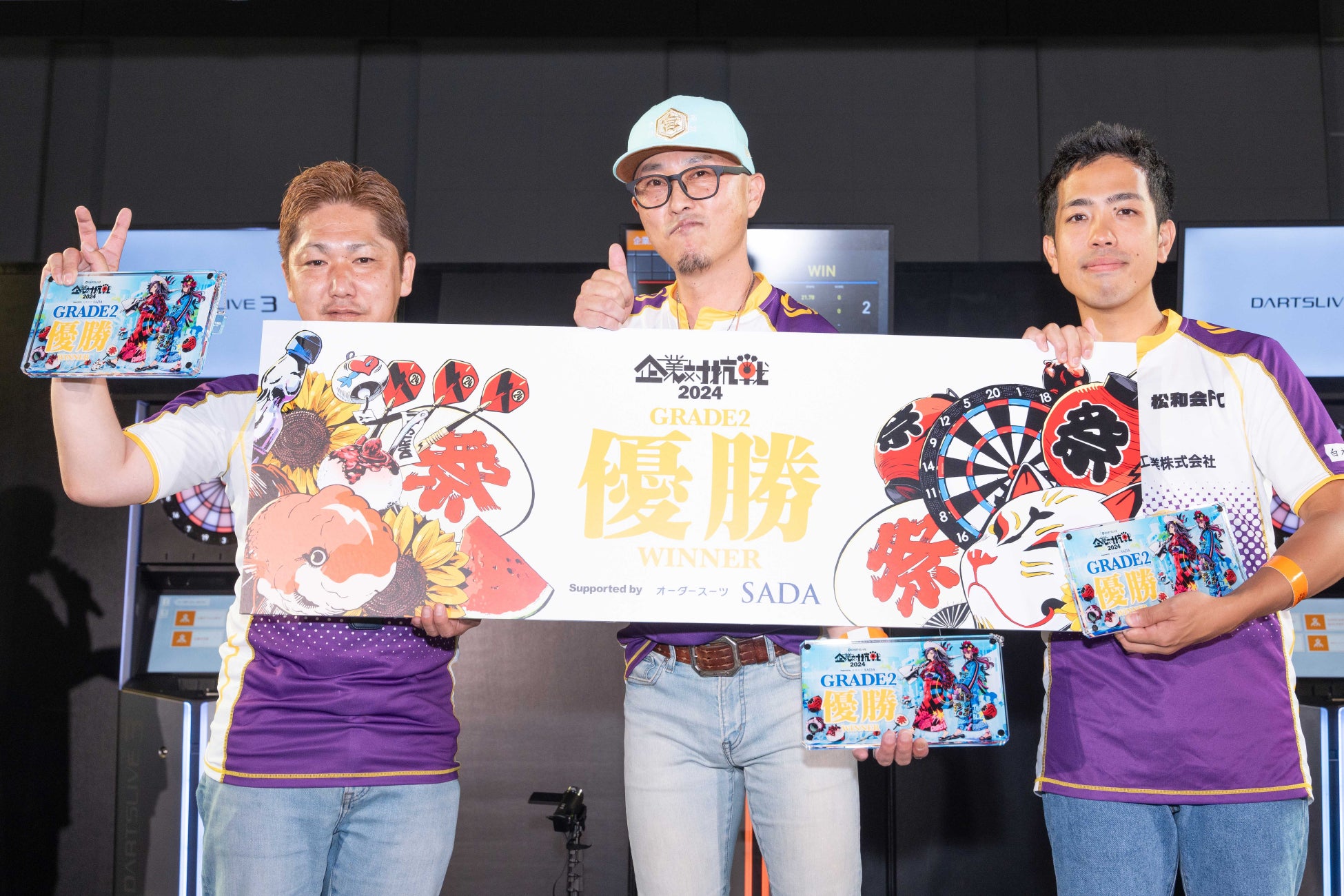 本大会に向けて、練習を重ねてきたという各チーム。中には、会社内で3名の出場権をかけたトーナメントを行った企業もあったといいます。各所でアツい試合が繰り広げられる中、グレード1「株式会社MJCONNECT」、グレード2「松田建設工業株式会社」が優勝を勝ち取りました。
