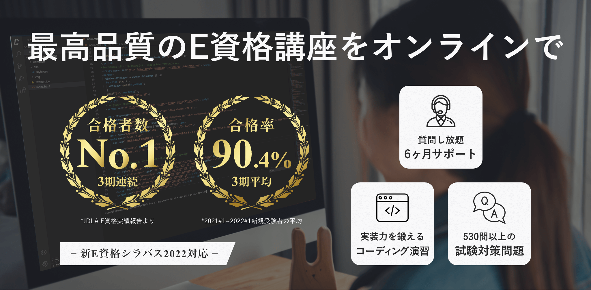 (※1)一般社団法人日本ディープラーニング協会(JDLA)からの合格実績報告による。2021#1から2022#1の過去3回の試験で合格者輩出数No.1を達成している。