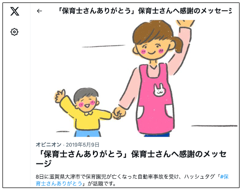 一方で、素晴らしい保育を行う保育士が在籍し、子どもたちがいきいきと過ごしている保育施設が全国に数多く存在します。ネガティブなニュースと比較して、このことが世の中に知られる機会が圧倒的に少ないのも事実です。コロナ禍においてはエッセンシャルワーカーとして社会的にその存在価値が高まり、2019年滋賀県で起きた事故の際には、SNS上で保育士を励ますようなアクションも起こされました。(※5)