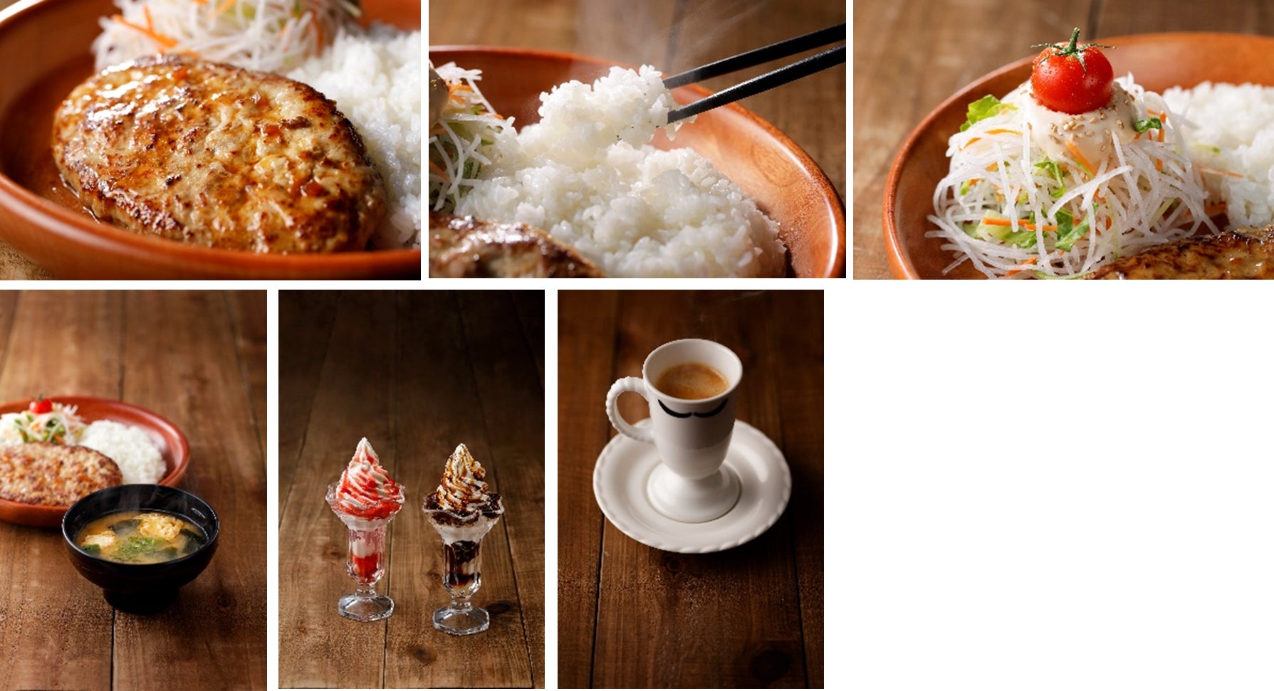焼きたてのハンバーグとよく合うように、あつあつ、つやつや、ふっくらライスを提供します。できるだけ炊きたてを召し上がっていただくために、飲食店としては少ない量を一日に何度も炊いています。農薬の使用を省き、除草剤1回だけで手間をかけて育てたオリジナル米「省農薬米」を使用しています。