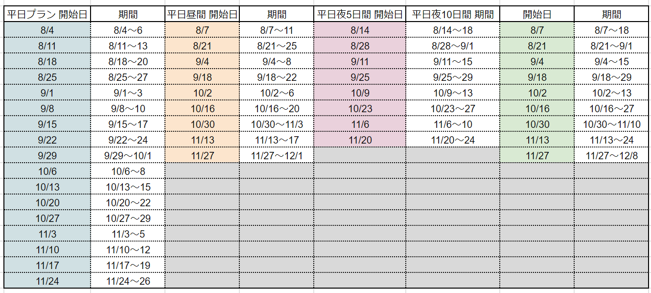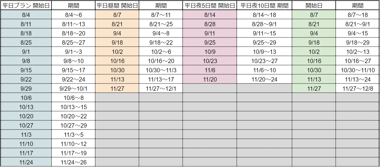 生徒様の都合にあったスケジュールを選択いただけるよう、4つのプランをご用意しております。