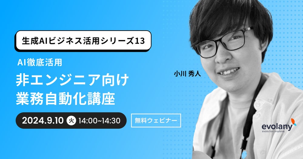 2024/9/10(火)14:00~14:30【生成AIビジネス活用シリーズ13】AI徹底活用〜非エンジニア向け業務自動化講座〜