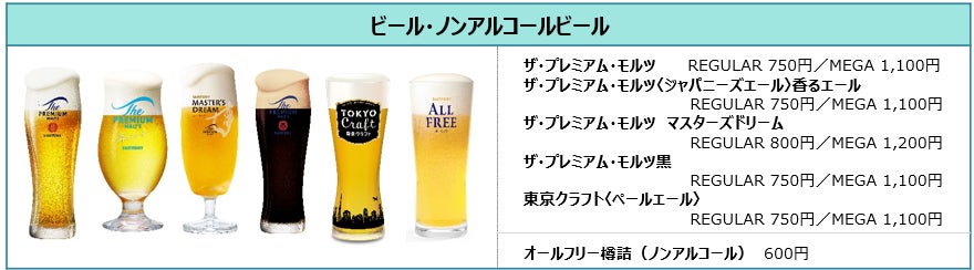 「ザ・プレミアム・モルツ」をはじめとした定番のビールに加え、昨年期間限定で提供し、大人気だったクラフトビールも全期間提供します。