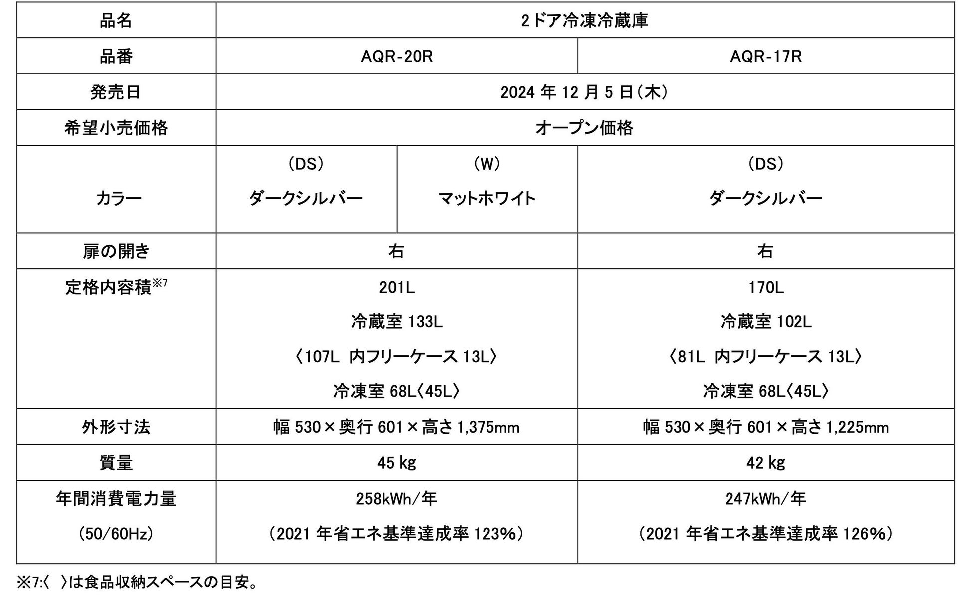 アクア株式会社(本社:東京都中央区、代表取締役社長 兼 CEO:杜 鏡国)は、冷凍冷蔵庫の「SIMPLE+(シンプル・プラス)」シリーズの新モデル(品番:AQR‐20R、AQR‐17R)を2024年12月5日(木)に発売いたします。インバーターを搭載することにより、省エネ・静音性が向上しました。また、コンパクトな本体サイズはそのままに、冷凍容量を増量(※1)することで、まとめ買いや作り置きがしやすく、カップルや単身世帯の自炊派におすすめです。