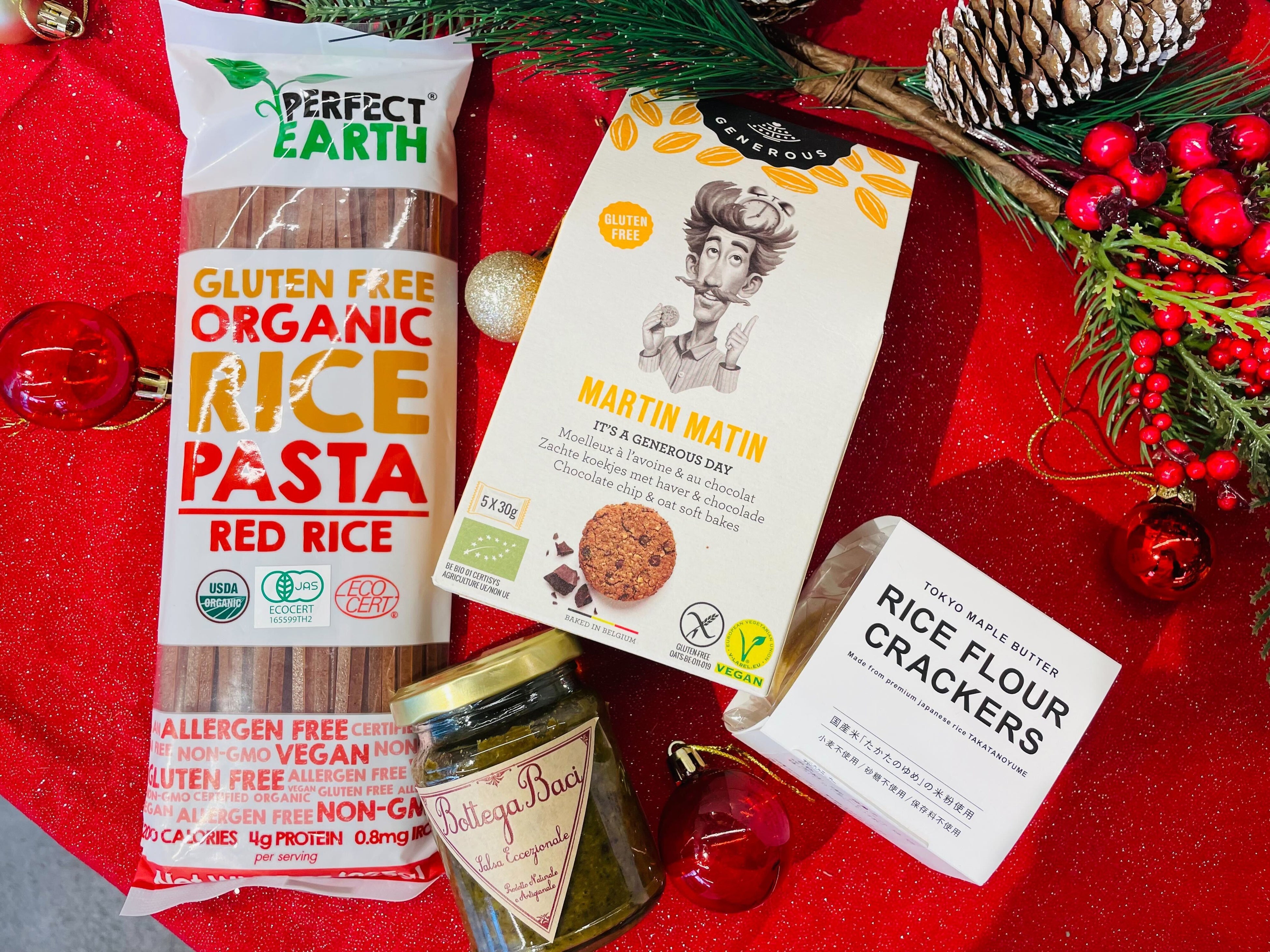 すべてグルテンフリーの商品を集めたセットです。日頃からグルテンフリー生活を送る方、年末年始にかけて胃腸を労わりたい方やダイエットを意識される方へのお土産にいかがでしょうか。店頭でジェノベーゼパスタに合わせやすい無農薬野菜やクッキーと相性抜群のティーパックもご用意しております。