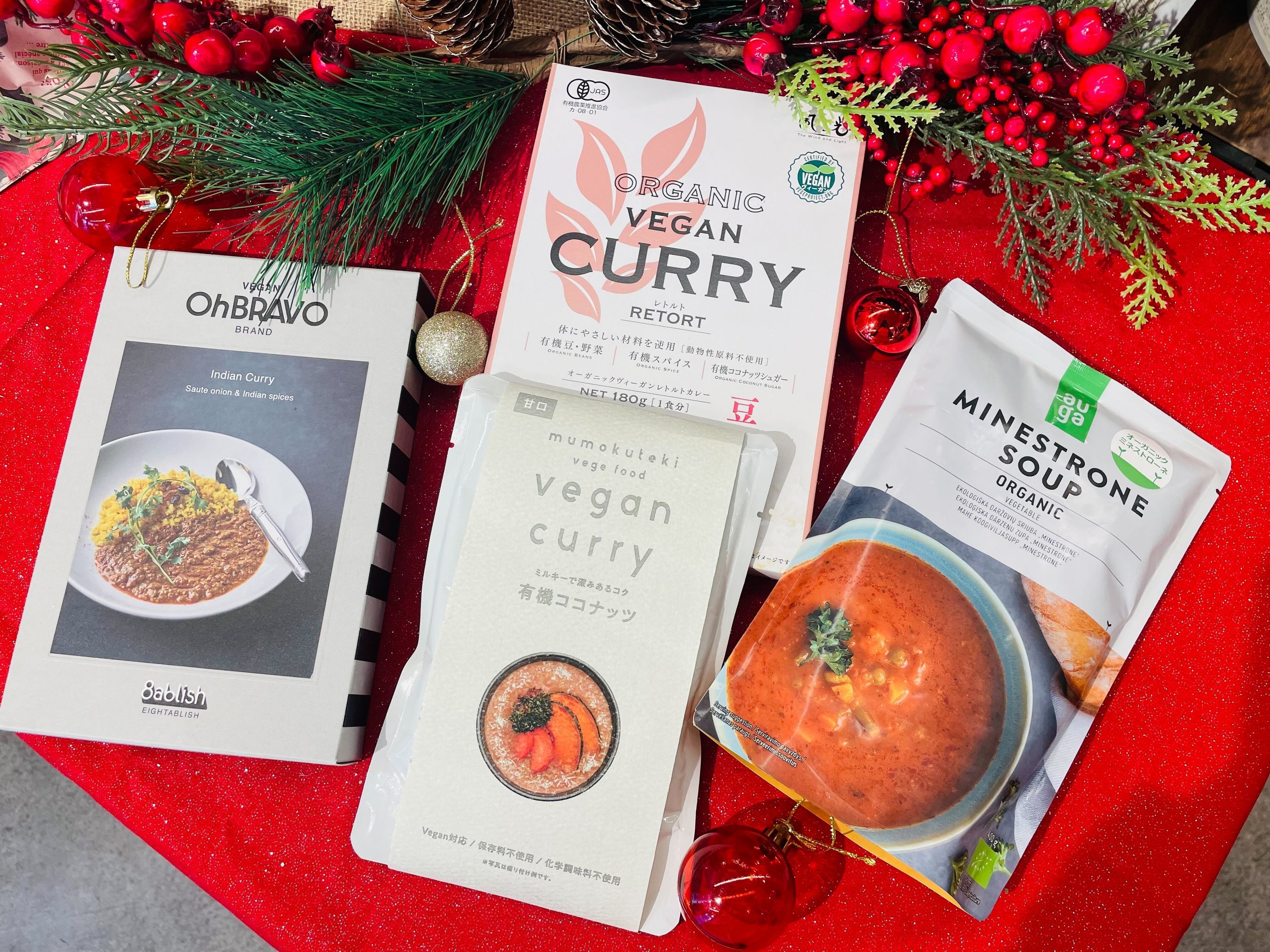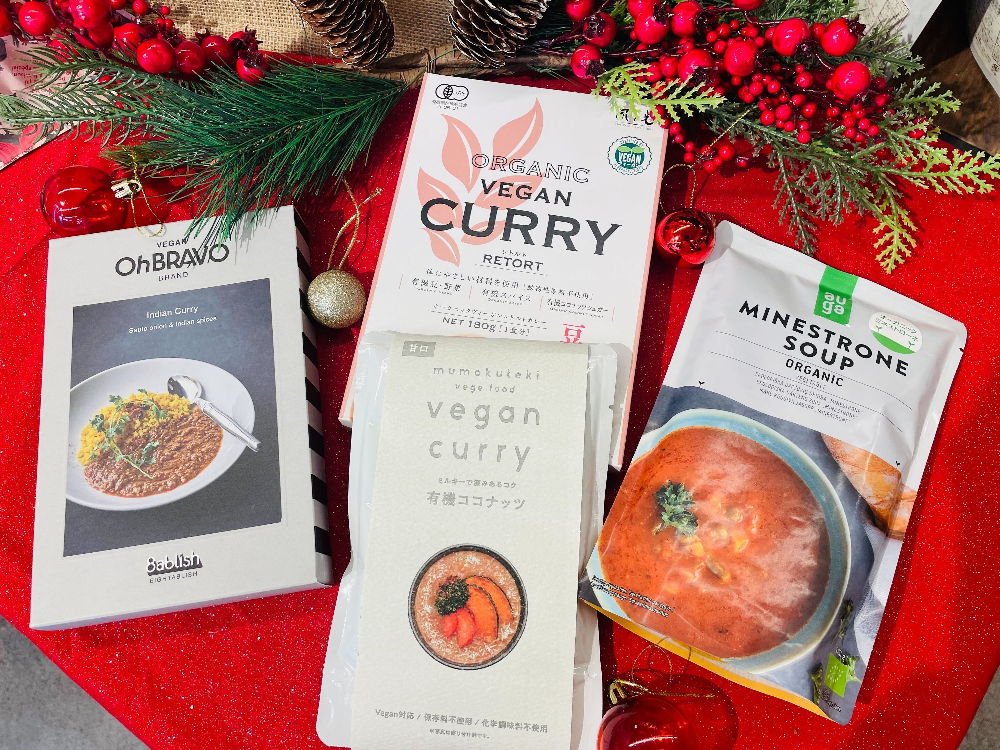 内容:auga/オーガニックスープ、mumokuteki/vegan curry、風と光/ORGANIC VEGAN CURRY、8ablish/Indian Curry