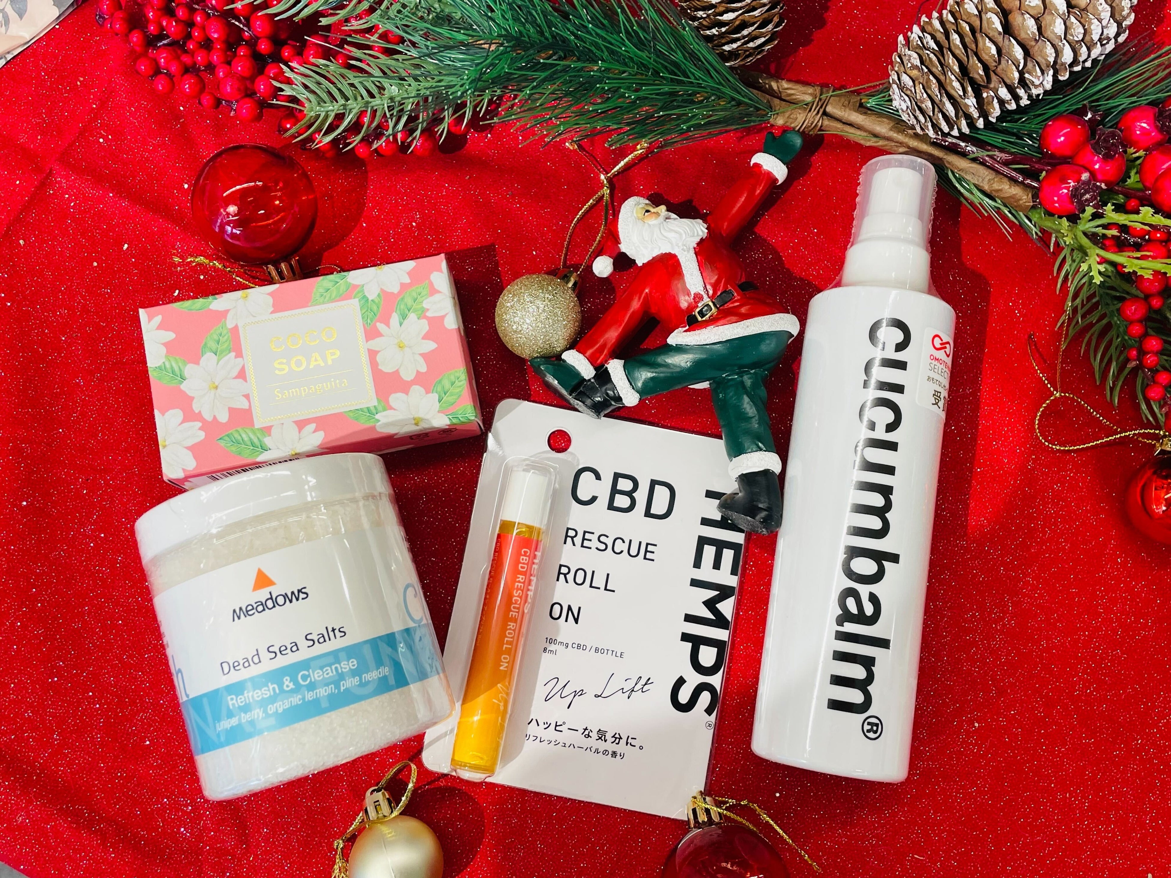 内容:cucumbalm/化粧水、HEMPS/CBD RESCUE ロールオン、cocowel/ソープ、meadows/アロマバスソルト デッドシーソルト