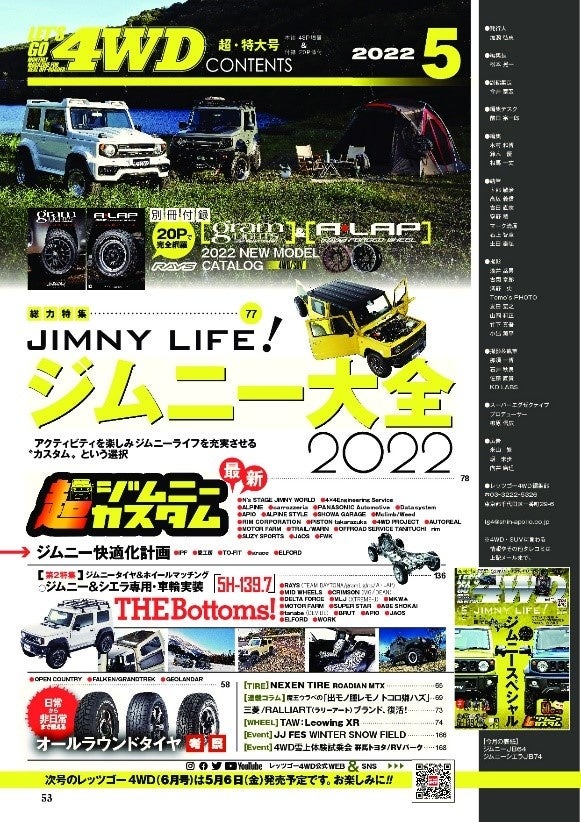 48ページを大増量!! ほぼ丸ごと一冊、ジムニーファンのためのジムニーファンによる総力特集! レッツゴー4WD5月号は2022年4月6日(水)発売!