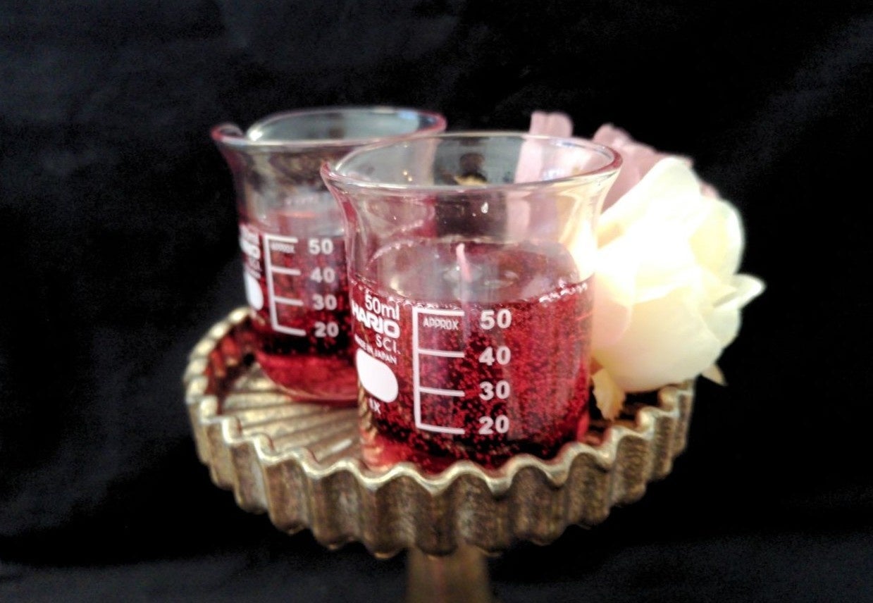 ハロウィン気分を盛り上げる透き通ったビーカーキャンドル。まるで血液を流し込んだかのような、ホラーにピッタリの特別なデザインのミニキャンドルです。