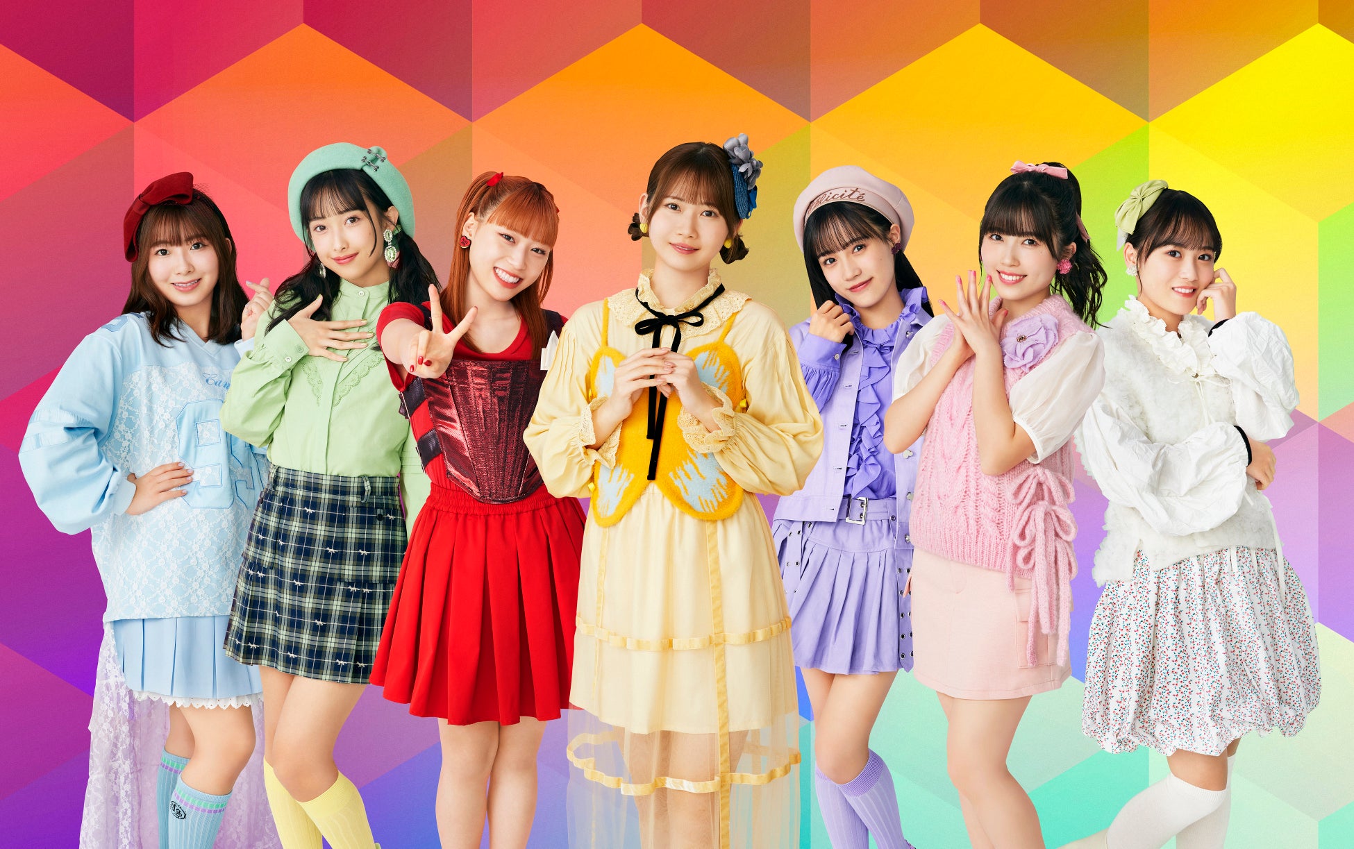 左から有澤一華(Juice=Juice)、北原もも(OCHA NORMA)、橋迫鈴(アンジュルム)、岡村ほまれ(モーニング娘。’25)、河西結心(つばきファクトリー)、西田汐里(BEYOOOOONDS)、橋田歩果(ロージークロニクル)