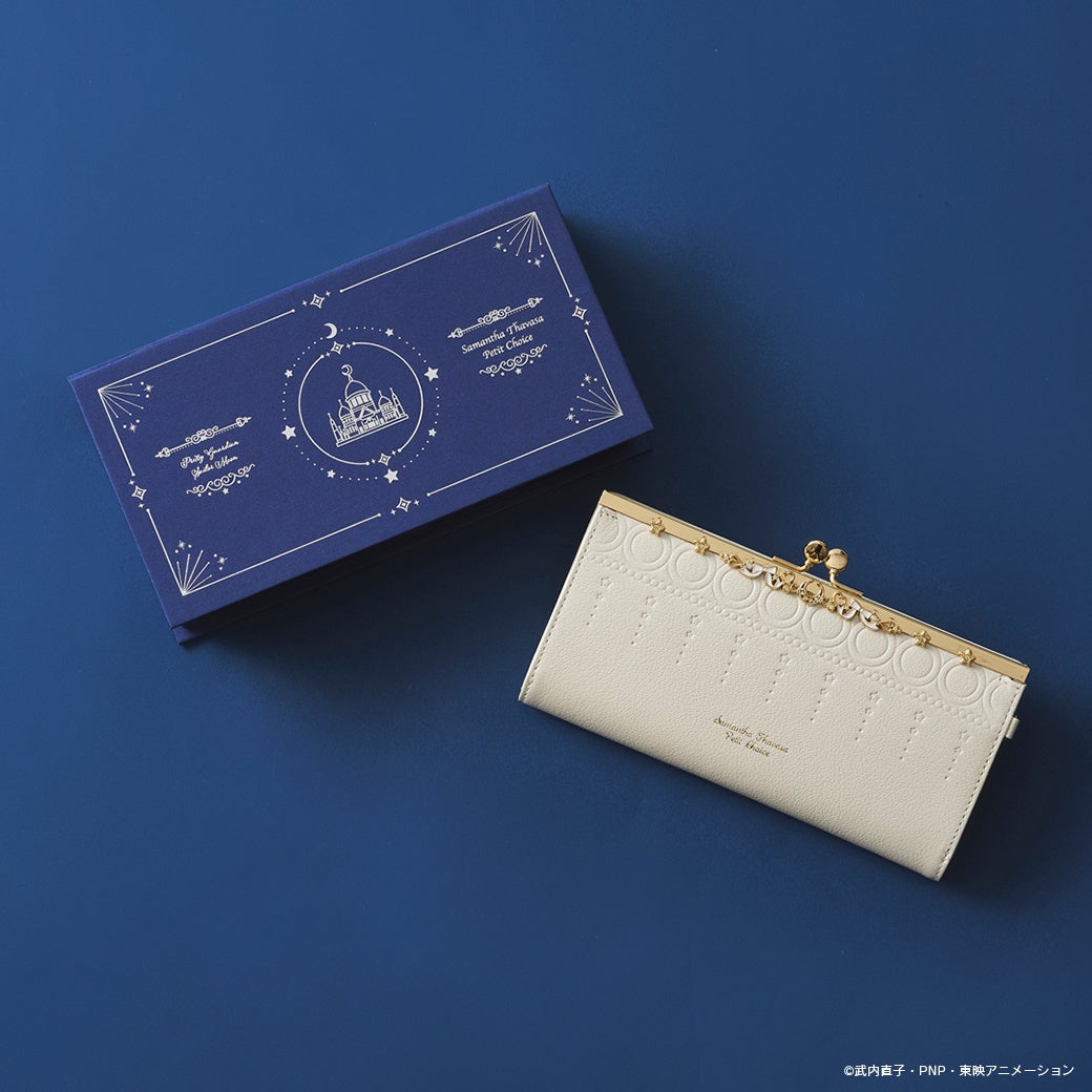 口金部分に、月や星のモチーフを散りばめた華やかなデザインの『プリンセス・セレニティ』をイメージした長財布には、特別仕様の限定BOOK型BOX付き。