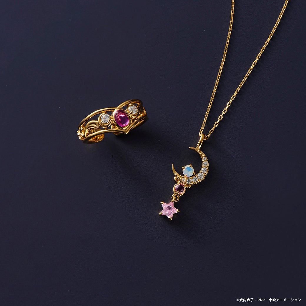 『美少女戦士セーラームーン』 ピンキーリング/イヤーカフ(ティアラモチーフ)17,600円・ネックレス(ムーンスティック)22,000円