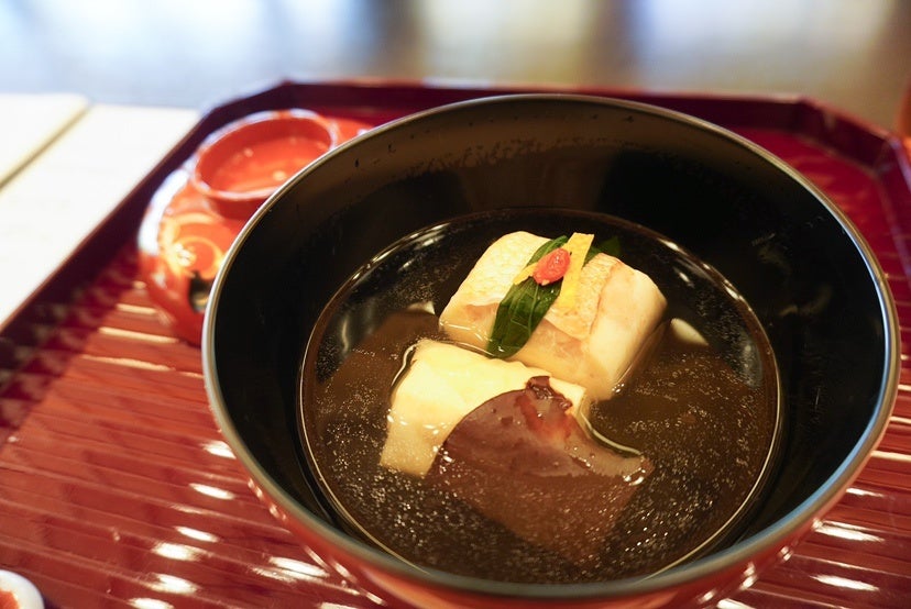 坐禅体験のあとは、横浜・関内に店を構え5年連続でミシュラン2つ星に輝いた「料理屋 真砂茶寮」による懐石料理&お抹茶体験。禅宗の考えの中で茶の文化が生まれたといわれ、喧騒から離れた場所で、静かに自分と向き合う時間を過ごします。懐石料理では、三溪園でも展示が行われている「菊」をテーマに食材や器にもこだわった料理の数々が提供されました。