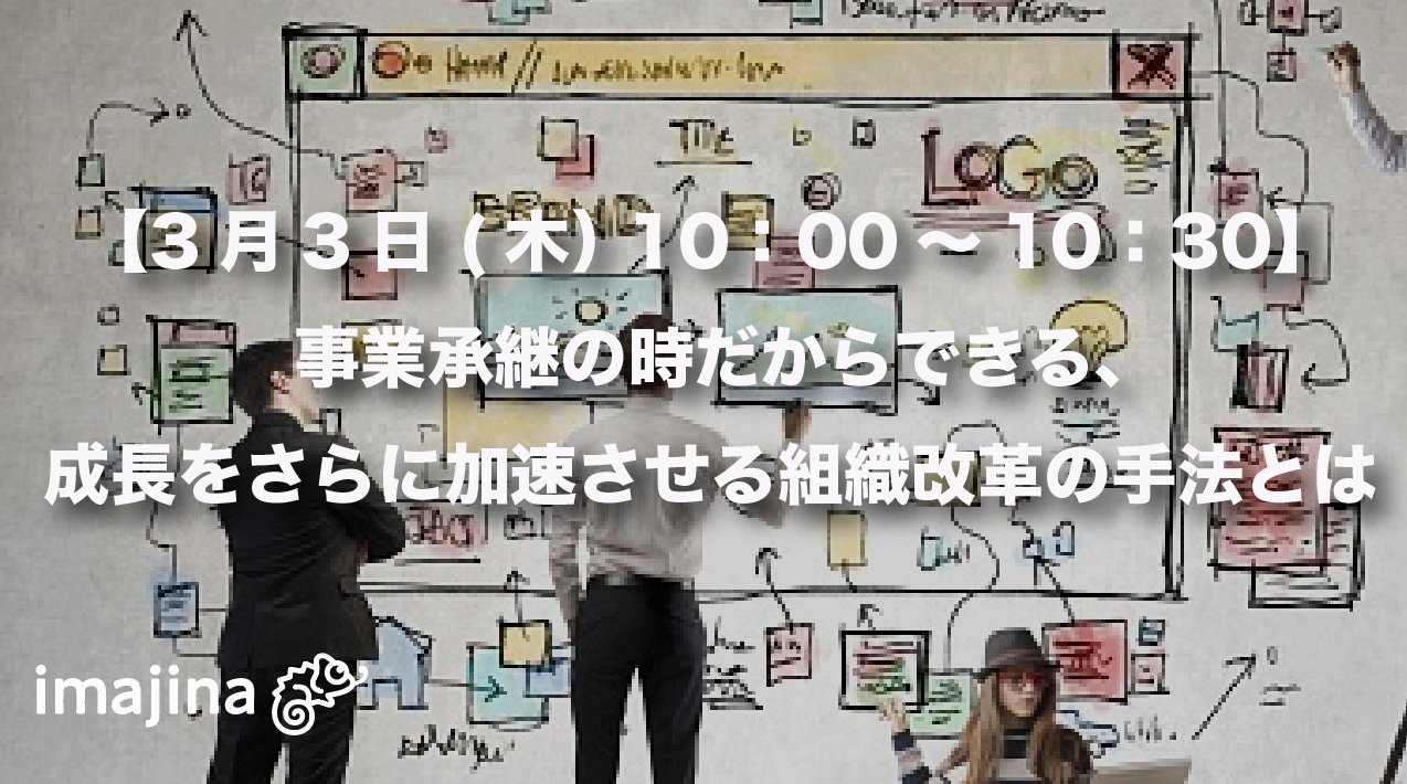株式会社イマジナ(https://www.imajina.com/)は、事業承継の時だからできる、成長をさらに加速させる組織改革の手法をテーマにWEBセミナーを開催いたします。