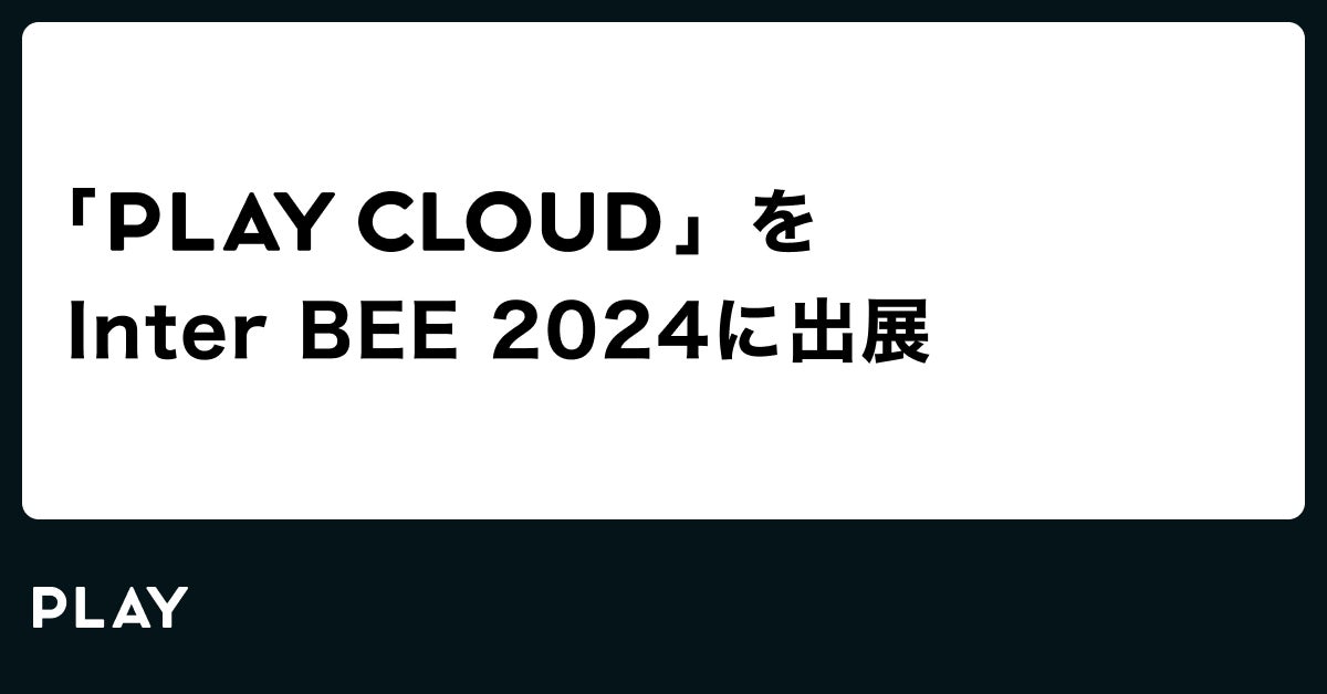 PLAY、Inter BEE 2024 に【PLAY CLOUD】を出展