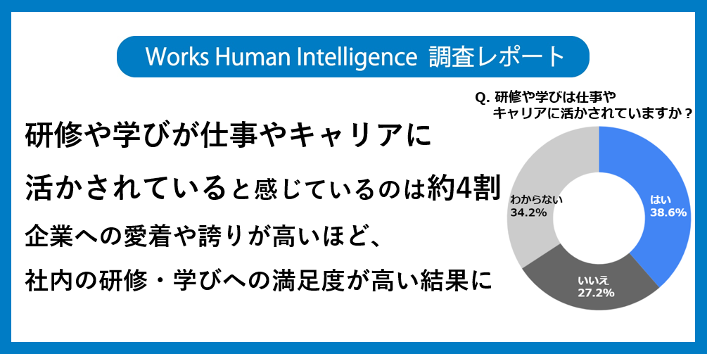 【WHI調査レポート】「研修や学びが仕事やキャリアに活かされている」と感じているのは約4割 企業への愛着や誇りが高いほど、社内の研修・学びへの満足度が高い結果に