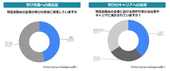 - 2.企業の研修や学びが仕事やキャリアに活かされていると回答したのは38.6%。