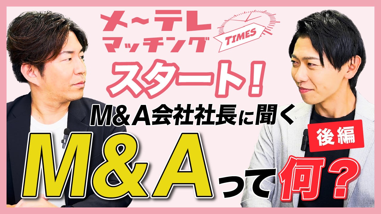 名古屋テレビ放送株式会社(以下「メ~テレ」といいます。)と株式会社M&A DX(以下「当社」といいます。) は、協業で事業承継・M&A支援の提供を行うプロジェクト「メ~テレマッチング」に関連したYouTube新番組「メ~テレマッチングTIMES」の配信を開始しました。ビジネスの現場で注目されるM&Aについて、基本的な知識から事例を踏まえた効果的な戦略まで、幅広い内容をお届けいたします。