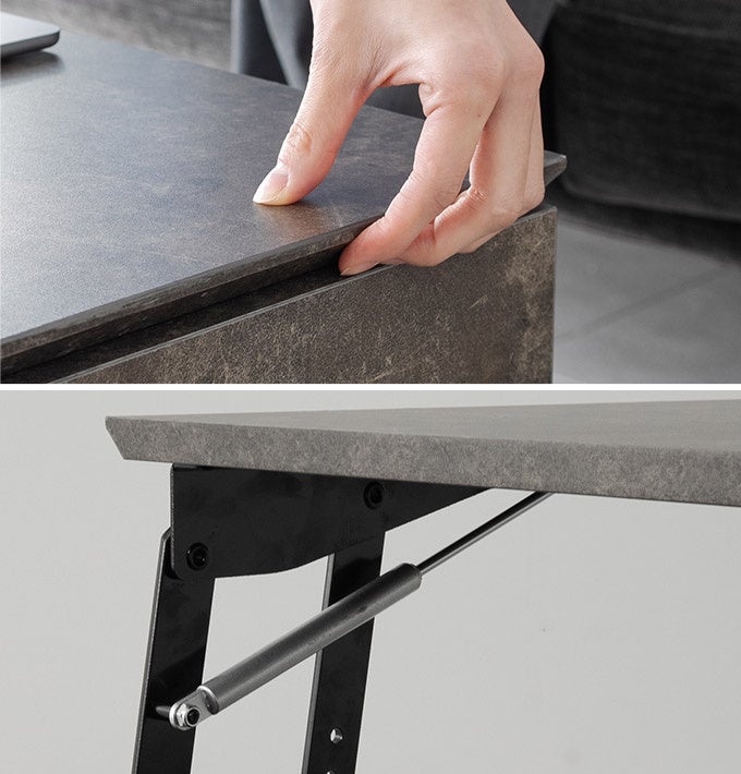 また、45°カットのエッジを施しており、天板に指がかかりやすく、余計な力を入れずに簡単にリフトアップ可能。
