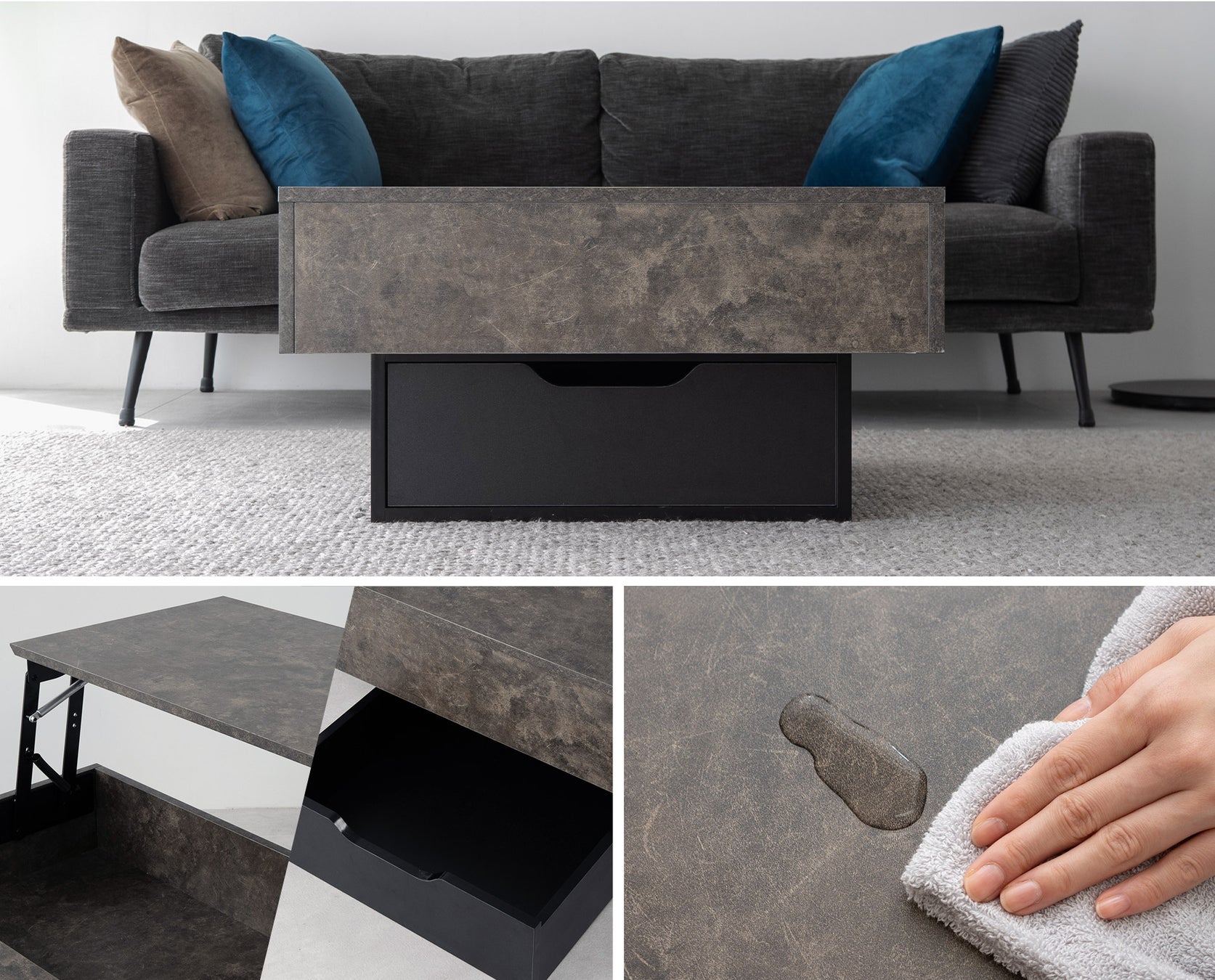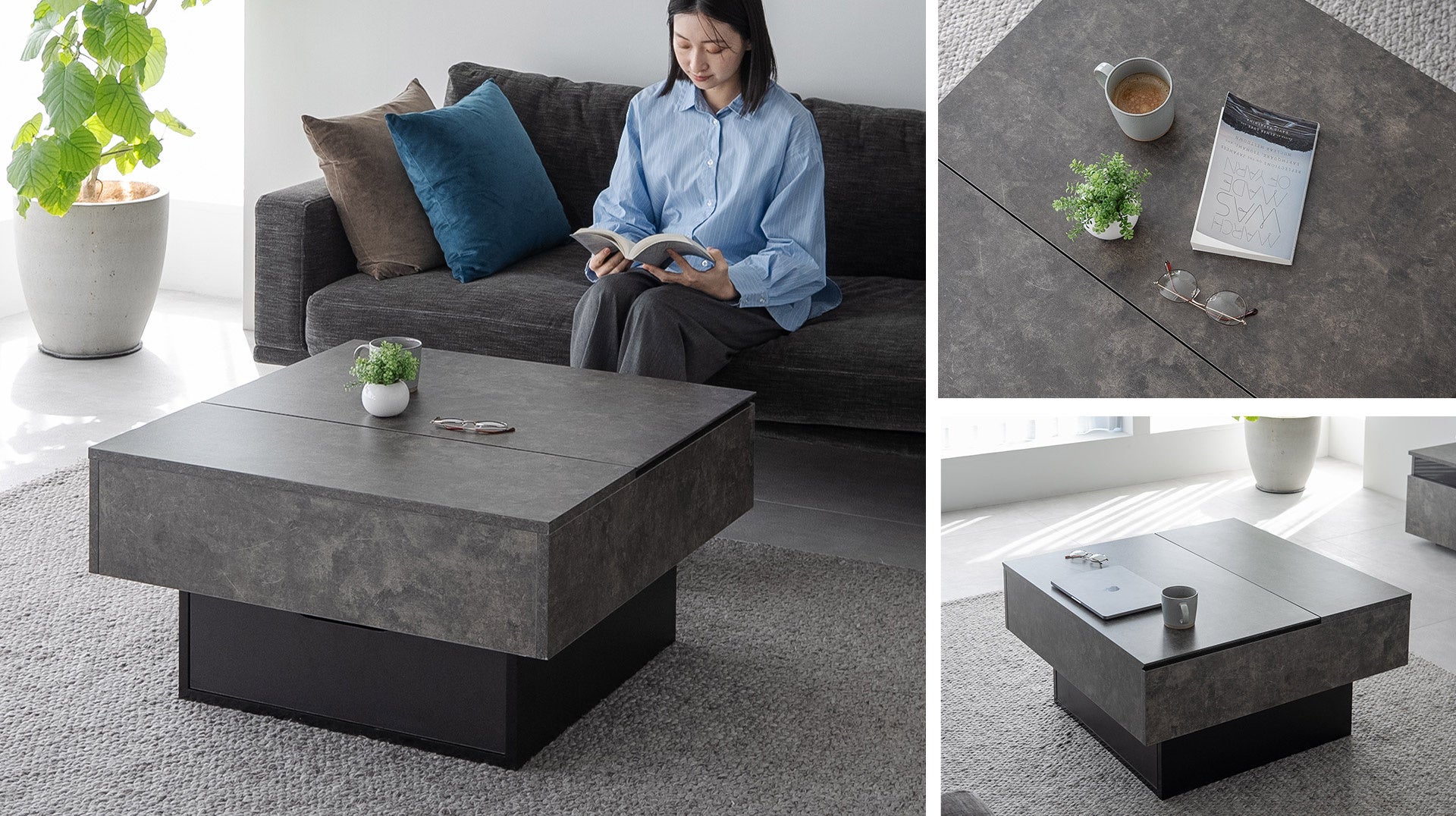 洗練されたデザインと実用性を両立。快適なリビング空間を叶えるリフトアップセンターテーブル。セラミック調のスタイリッシュな仕上がりで、リビングの主役になる一台です。